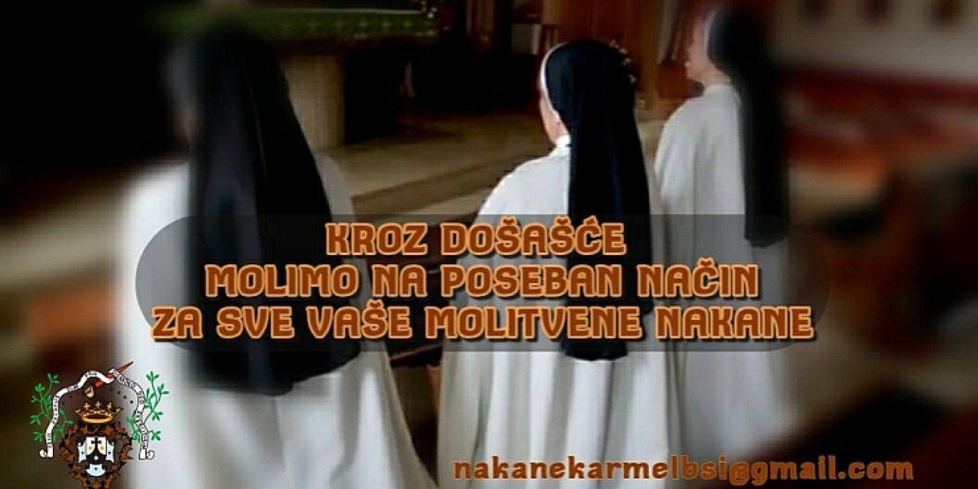 Svoje molitvene nakane sestrama karmelićankama BSI možete slati putem e-pošte: Ova e-mail adresa je zaštićena od spambota. Potrebno je omogućiti JavaScript da je vidite. ili Facebooka.