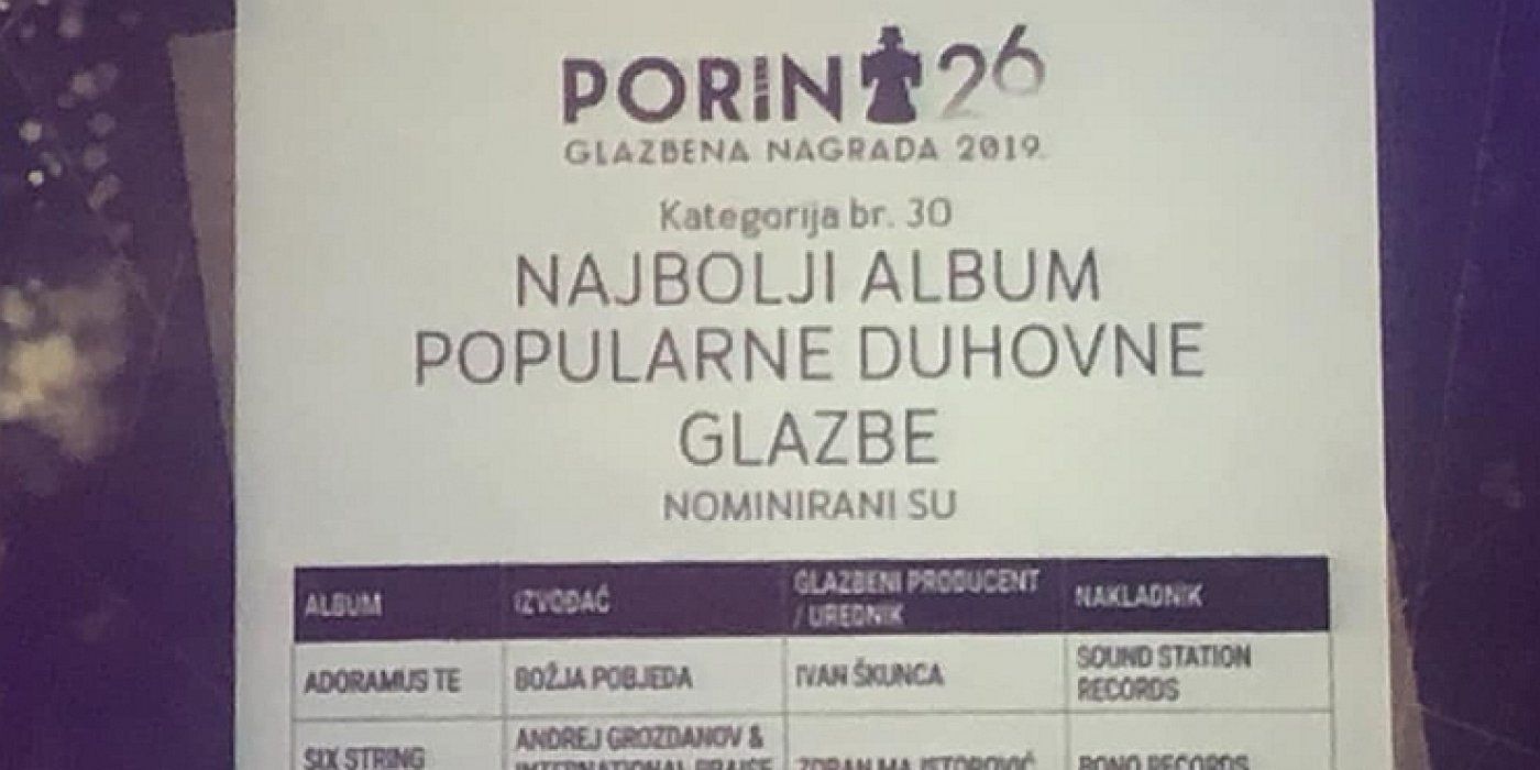 U kategoriji Album popularne duhovne glazbe, od 13 albuma koliko je bilo prijavljeno za nagradu Porin, biračko tijelo u prvom krugu odabralo je četiri albuma, donosi Laudato.hr.