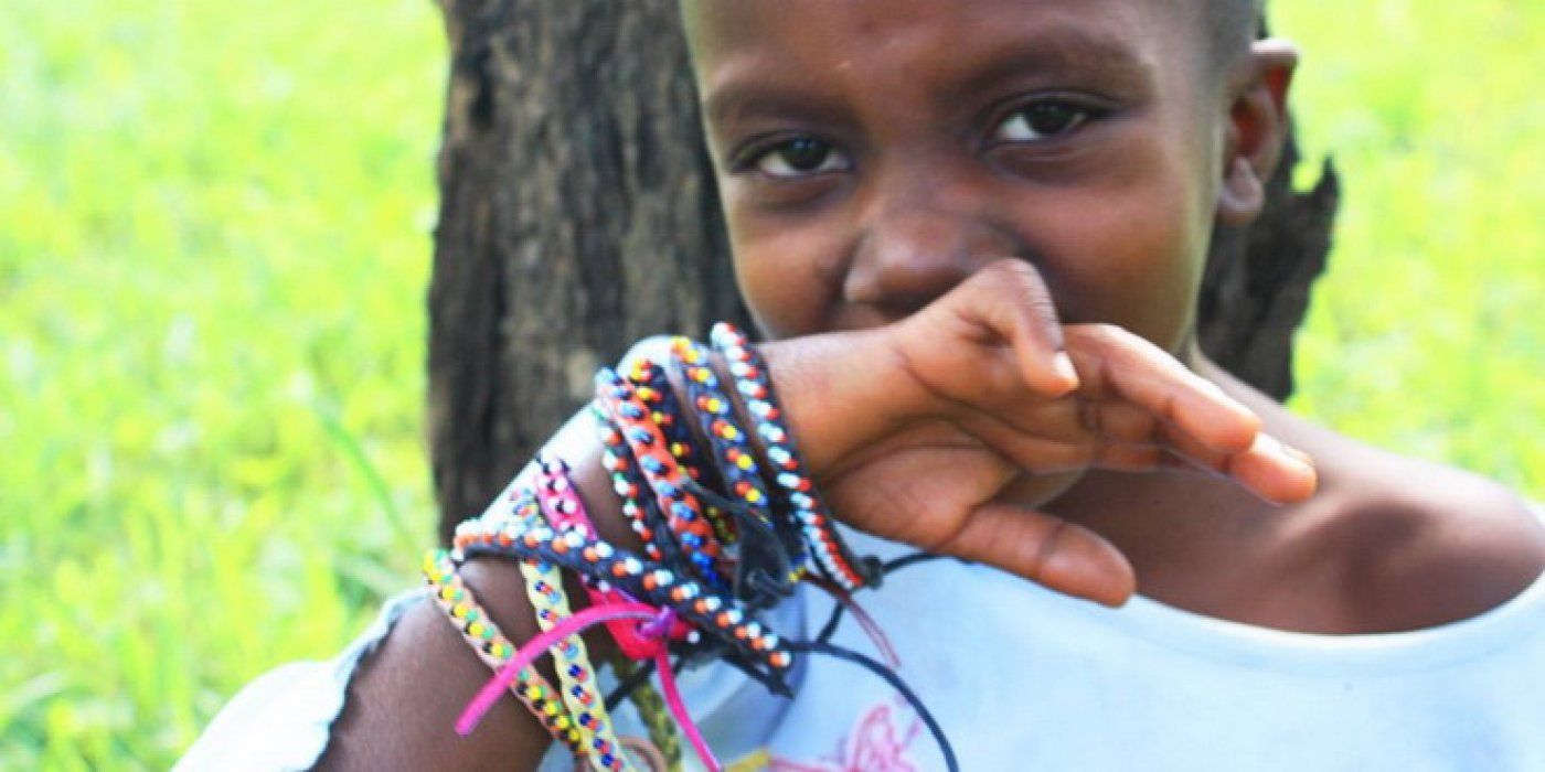 Narukvice su ručno pletene u misiji u Africi, ukrašene veselim perlicama u plemenskim bojama.