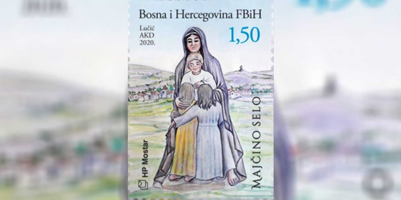 Na poštanskoj markici je motiv brončane skulpture Gospinog kipa s Isusom u krilu i djecom koji se nalazi na ulazu u Majčino selo. Kip je djelo fra Joakima-Jakog-Gregova, svestranog čovjeka: fratra, električara, kipara, pjesnika i vojnika.