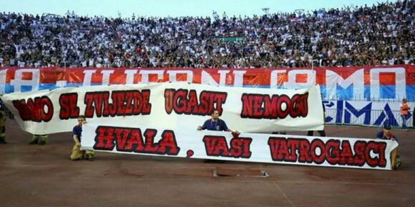 “Samo se zvijezde ugasiti ne mogu. Vaši vatrogasci”, stajalo je na transparentu.