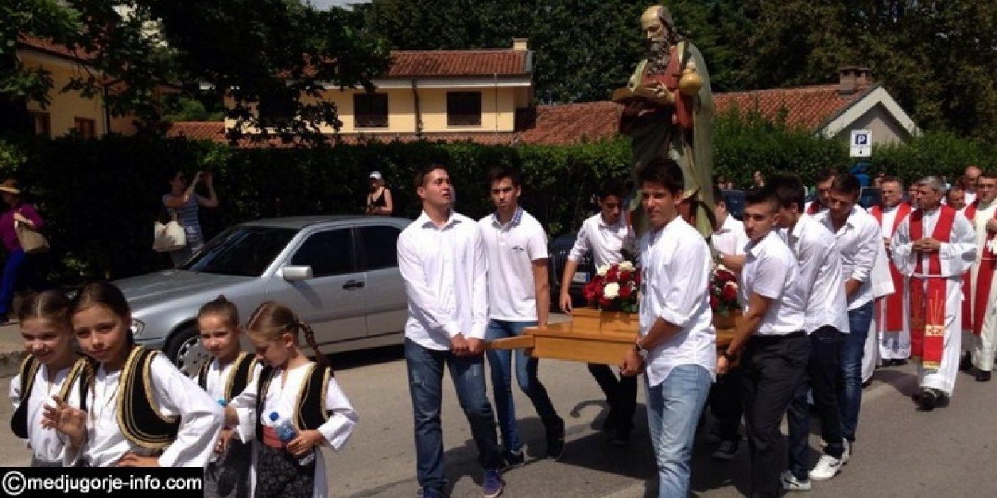 Il giorno della Festa di San Giacomo, le Sante Messe in lingua croata saranno celebrate, in chiesa parrocchiale, alle ore 7:00, 8:00 e 19:00, mentre la Celebrazione principale sarà la Santa Messa solenne che verrà celebrata alle ore 11:00 nel boschetto. La Processione con il simulacro del Santo Patrono, che quest’anno verrà trasportato da alcuni membri del Villaggio della Madre e della Comunità “Padre Misericordioso”, partirà dalla chiesa alle ore 10:45.