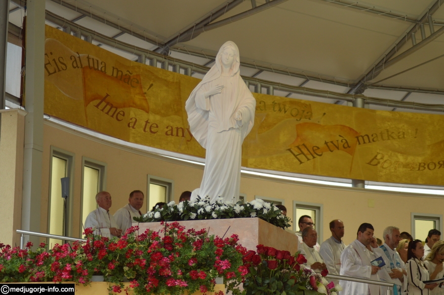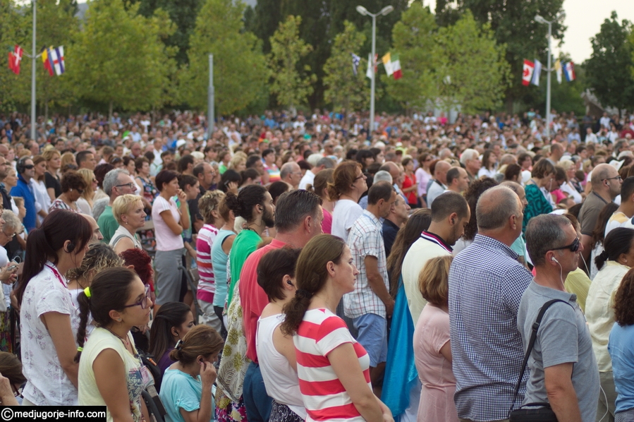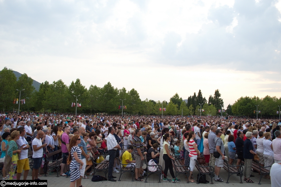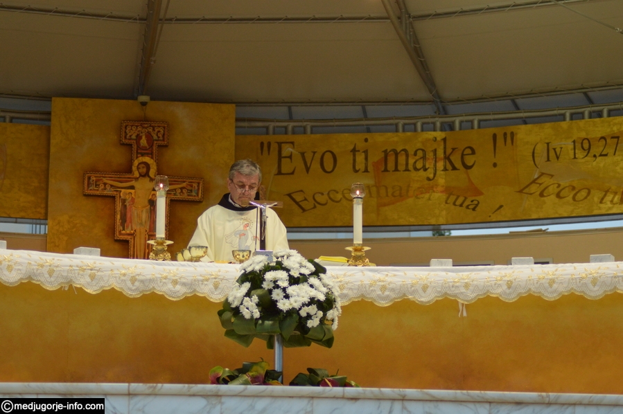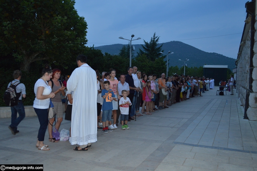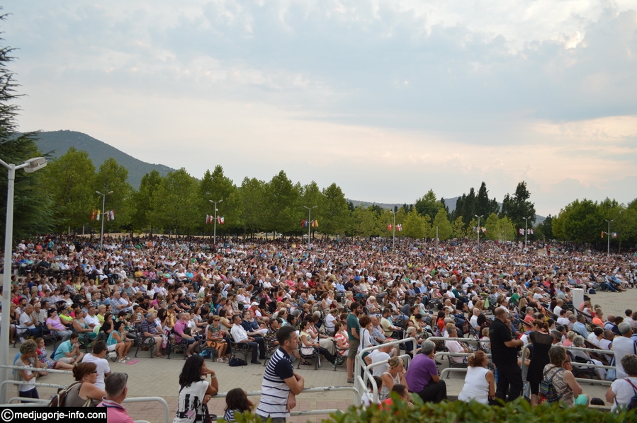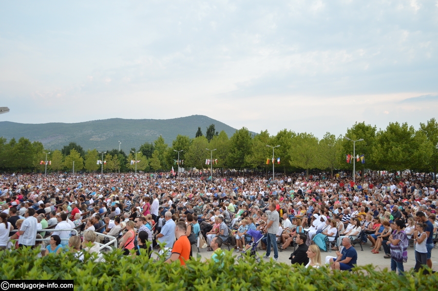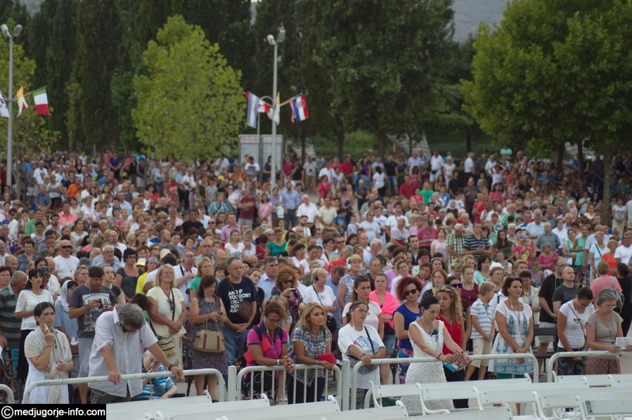 Molti di loro, in maggioranza giovani, sono giunti a Medjugorje a piedi la notte precedente la Solennità o nelle prime ore del mattino, si sono confessati ed hanno partecipato alle Sante Messe. La prima Santa Messa in croato è stata celebrata alle ore 6:00 del mattino, seguita da altre alle ore 7:00, 8:00, 9:00 e 11:00. La Santa Messa serale delle ore 19:00 è stata presieduta, presso l’Altare esterno della chiesa di San Giacomo, da fra Ivan Ševo, Vicario della Provincia Francescana dell’Erzegovina, e concelebrata da ottanta sacerdoti. Stando ai dati forniti dall’Ufficio Informazioni, nel giorno dell’Assunta sono stati a Medjugorje gruppi di pellegrini provenienti dalla Polonia, dalla Slovacchia, dalla Repubblica Ceca, dall’Ucraina, dal Libano, dalla Corea, dalla Malesia, da Israele, dal Canada, dall’Italia, dal Messico, da Panama, dall’Argentina, dal Belgio, dalla Romania, dalla Bosnia Erzegovina e dalla Croazia.