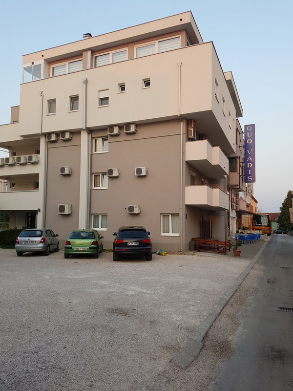 La pensione ha un parcheggio privato per autobus e macchine. La pensione ”QUO VADIS” ha a disposizione 30 camere. Ogni camera ha un bagno, le camere sono climatizzate e hanno la connessione internet wireless gratis, c'è anche l' ascensore!