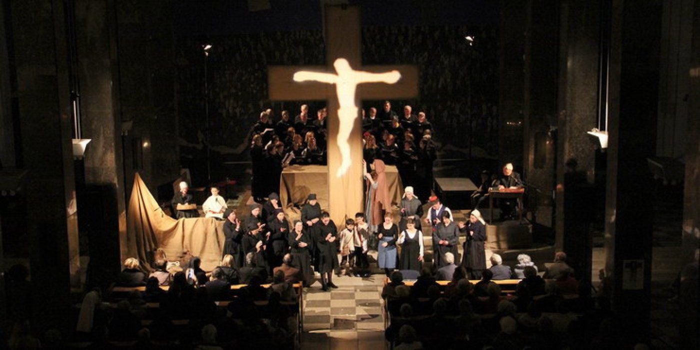 Impresivna glazbena izvedba izvrsno je upotpunjena scenskim elementima. U središtu scenske izvedbe je veliki križ, umjetnička kreacija Roberta Košte, oko kojeg se događa sve skazanje. Folklorni elementi i narodna nošnja koju nose sudionici svih generacija koji u nekoliko zanimljivih ophoda uprisutnjuju negdašnje tradicijske običaje dalmatinskog otočkog života na osobit način upotpunjuju ovo događanje koje traži punu pozornost publike. Izvrsnom prijemu kod publike u punoj crkve sv. Frane svjedočio je i dugi pljesak kojim je publika ispratila goste iz Zadra i s Ugljana.