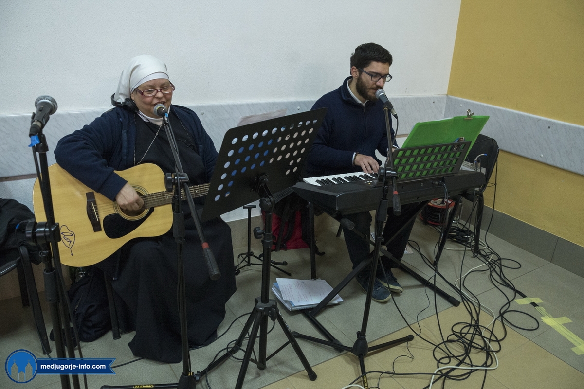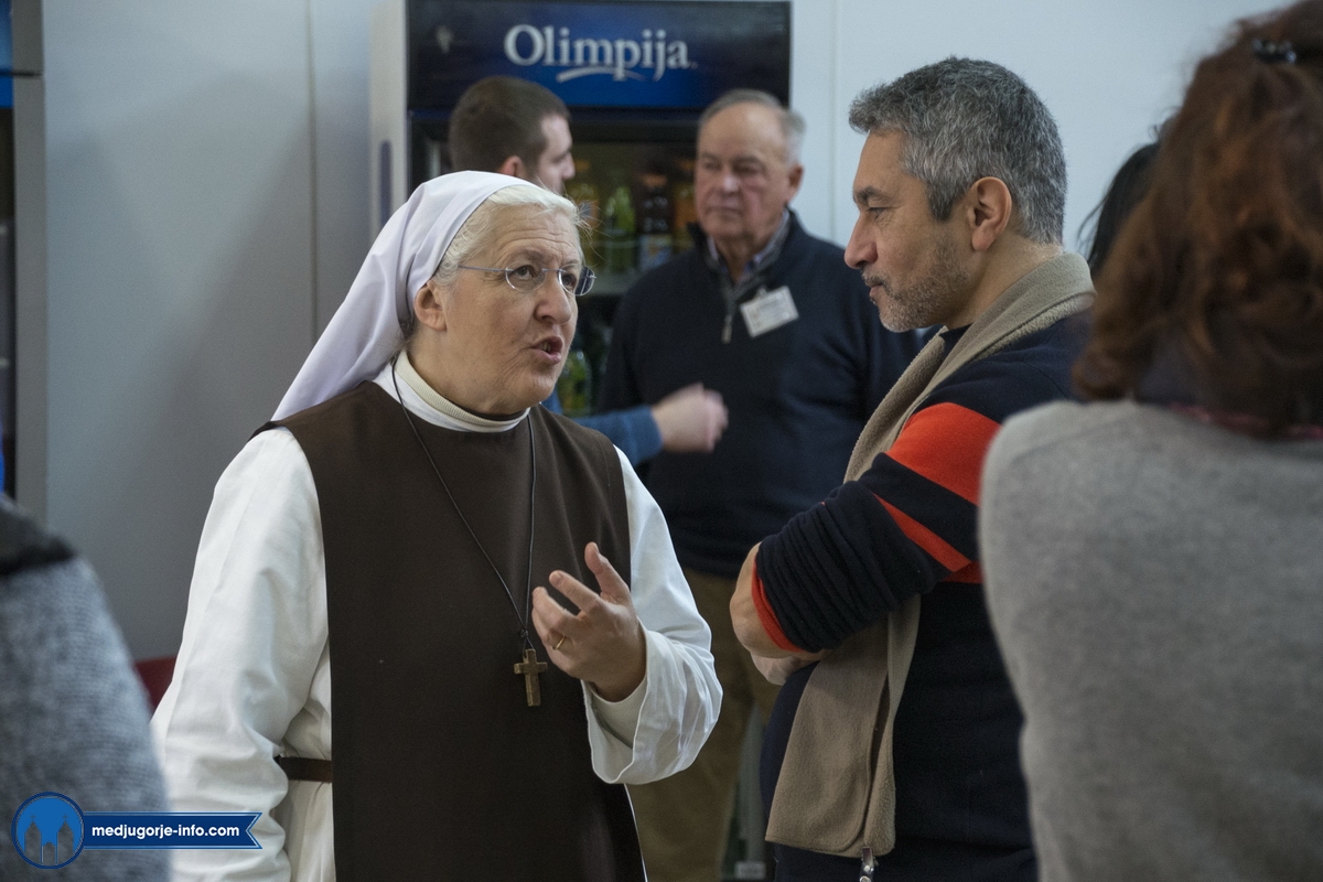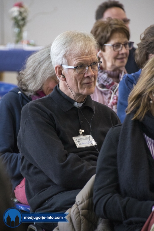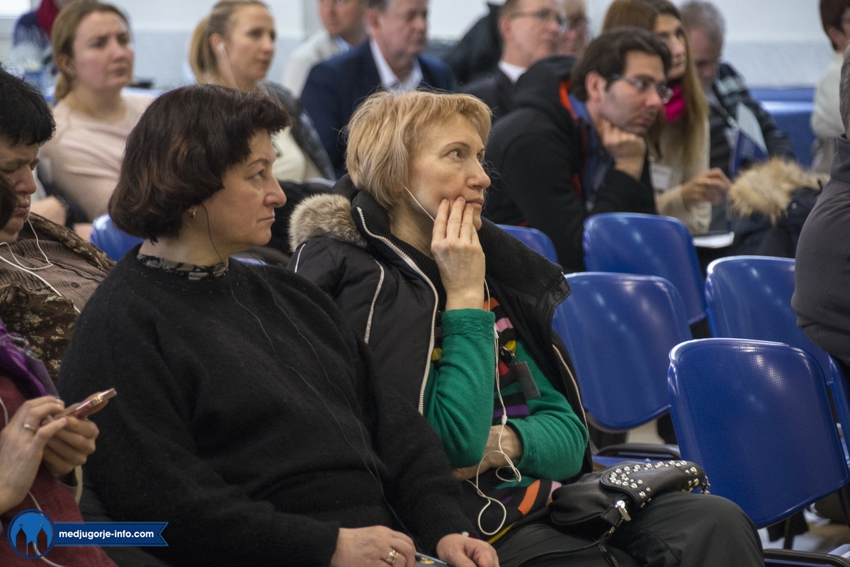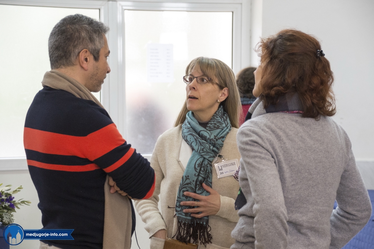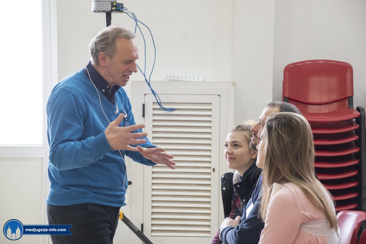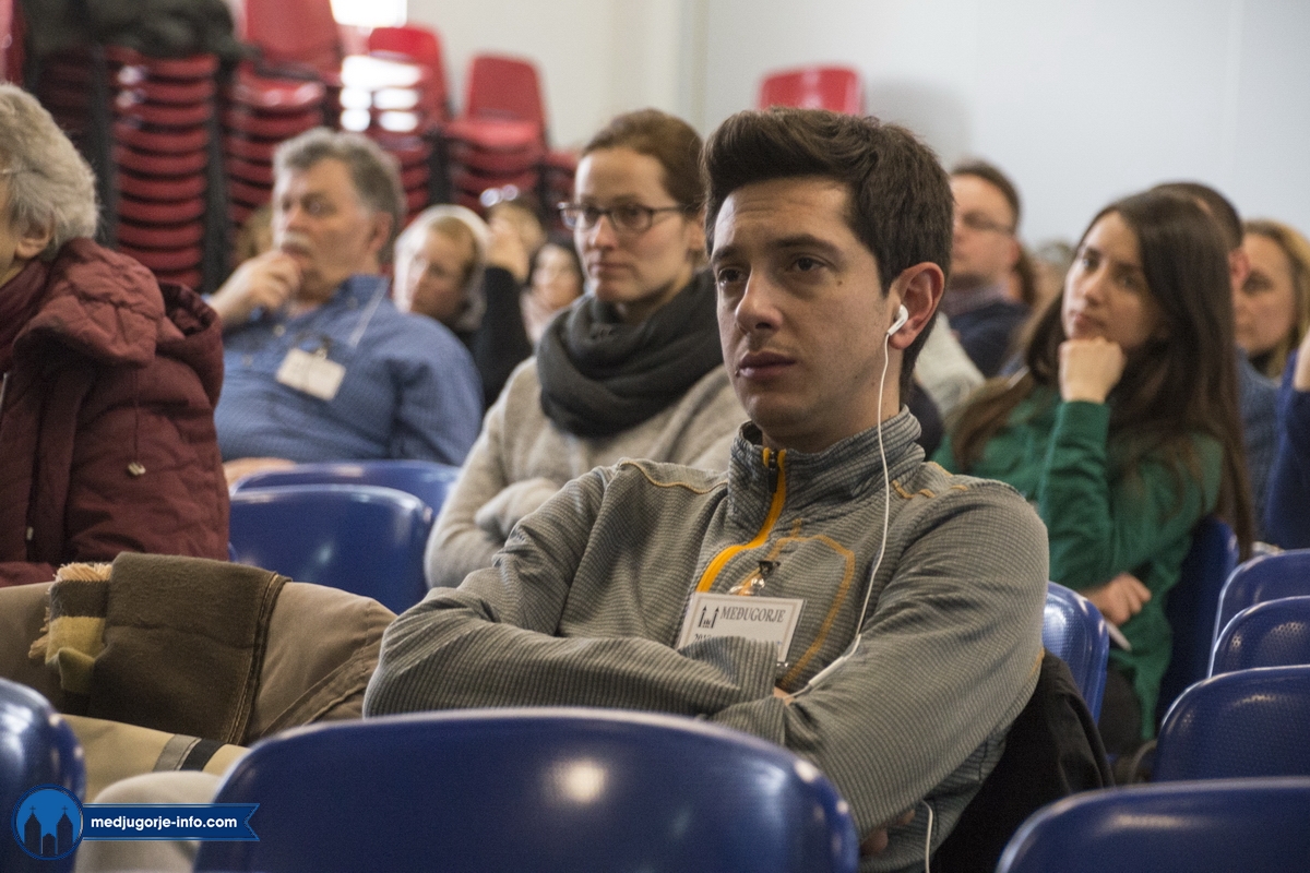 Na duhovnim vježbama je nešto manji broj sudionika nego prošlih godina, najvjerojatnije zbog loših, polarnih vremenskih uvjeta koji vladaju ovih dana i našim i Evropskim područjem. Jutrošnji program pratilo je 140-tak sudionika iz 11 govornih područja (talijanski (20), njemački (25), slovački (9), engleski (8), španjolski (10), ruski (14), ukrajinski (17), madžarski (7), poljski (17), hrvatski (1), francuski (9)). Započelo se molitvom: bilo je to klanjanje Presvetom, a nakon toga je fra Marinko održao predavanje koje je sve prisutne pozvalo na PUT PREMA SVETOSTI – a to je naime put življenja Gospinih poruka s onom voljom, odlukom, žarom, željom kao na počecima ukazanja.