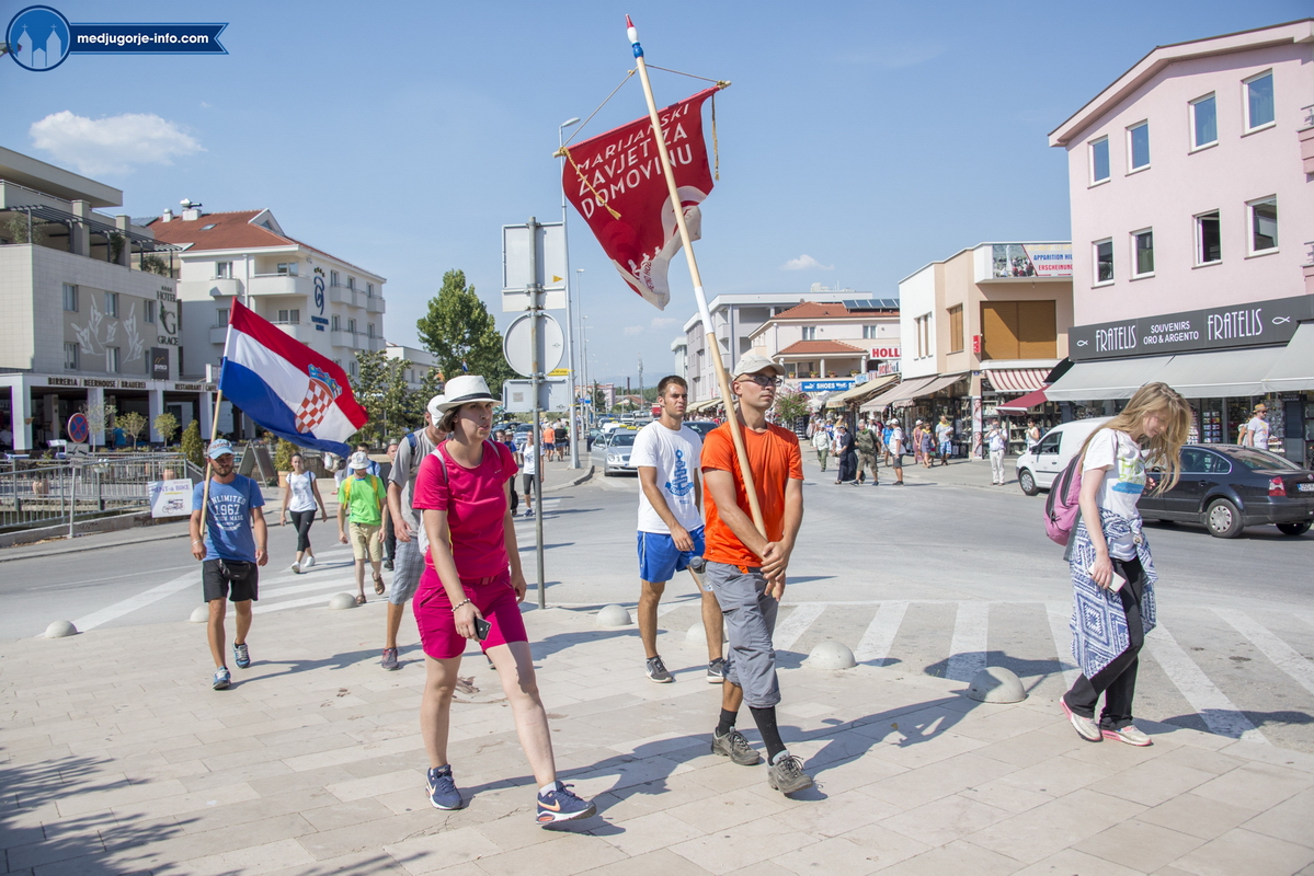 Hodočasnička ruta krenula je i ove godine 11. 06. iz Osijeka preko našeg najistočnijeg svetišta sjeverne Hrvatske, Aljmaša, a završit će na Srđu kod Dubrovnika. Cilj je na tom putu spojiti što veći broj važnijih svetišta, preko Zagreba, Rijeke i Dalmacijom do posljednjeg odredišta u Dubrovačkoj biskupiji. Svaku etapu prelazi druga skupina hodočasnika, i prolazi unaprijed određenu rutu puta. U sklopu 10. tjedna hodočašćenja (od 13. – 19. 08. 2017.) koje iznosi 166,6 km, hodočasnici će prijeći Trilj-Aržano-Imotski-Posušje-Široki Brijeg-Mostar-Međugorje-Metković. Cjelokupni hodočasnički put, odnosno njegov glavni tok, dug je oko 1640 km. Kako je izgledao dolazak u Međugorje pogledajte u našoj fotogaleriji: