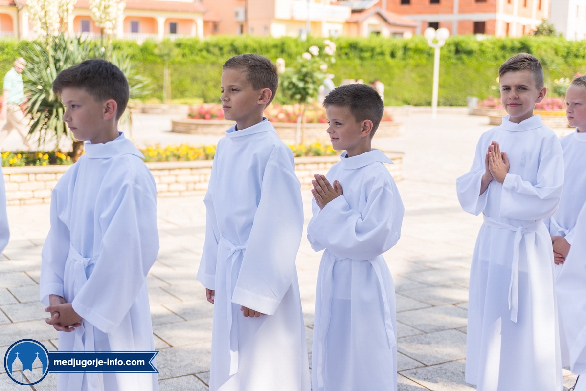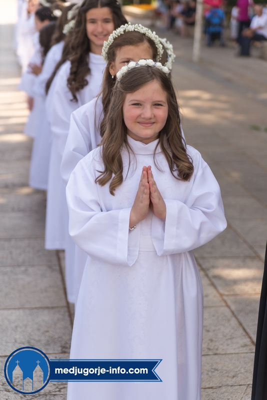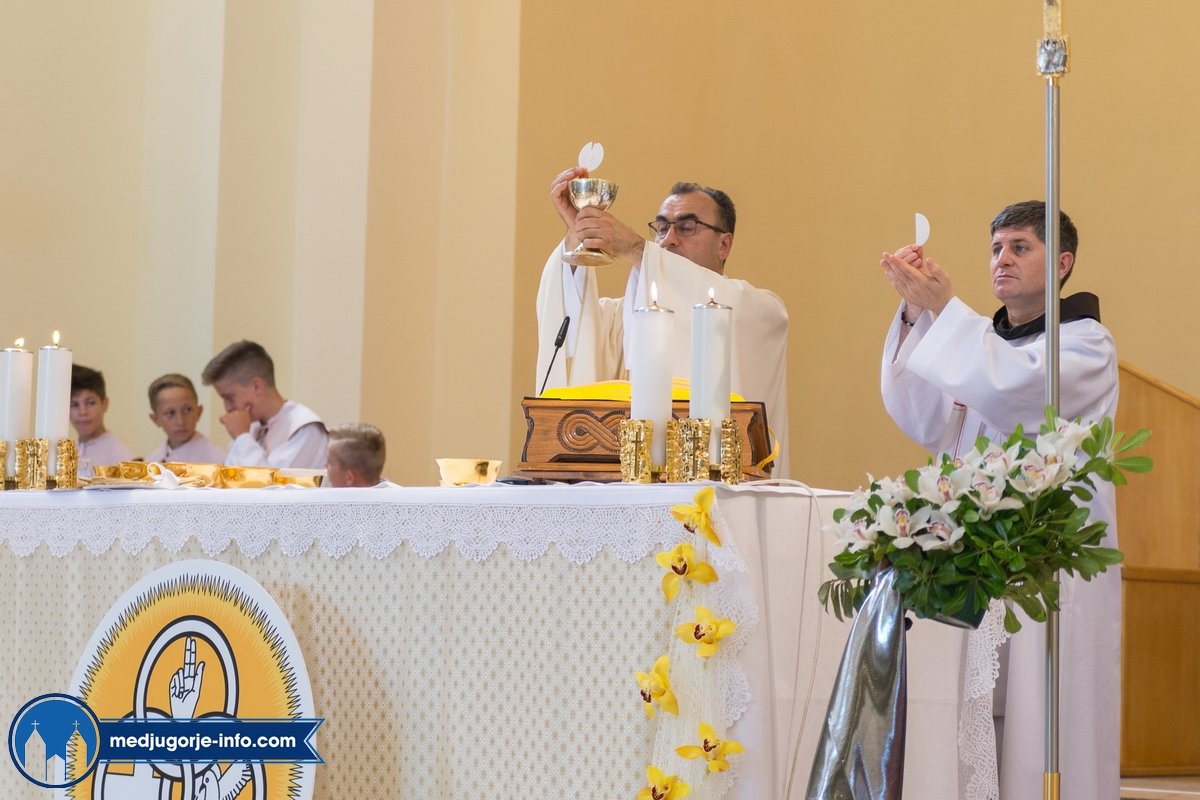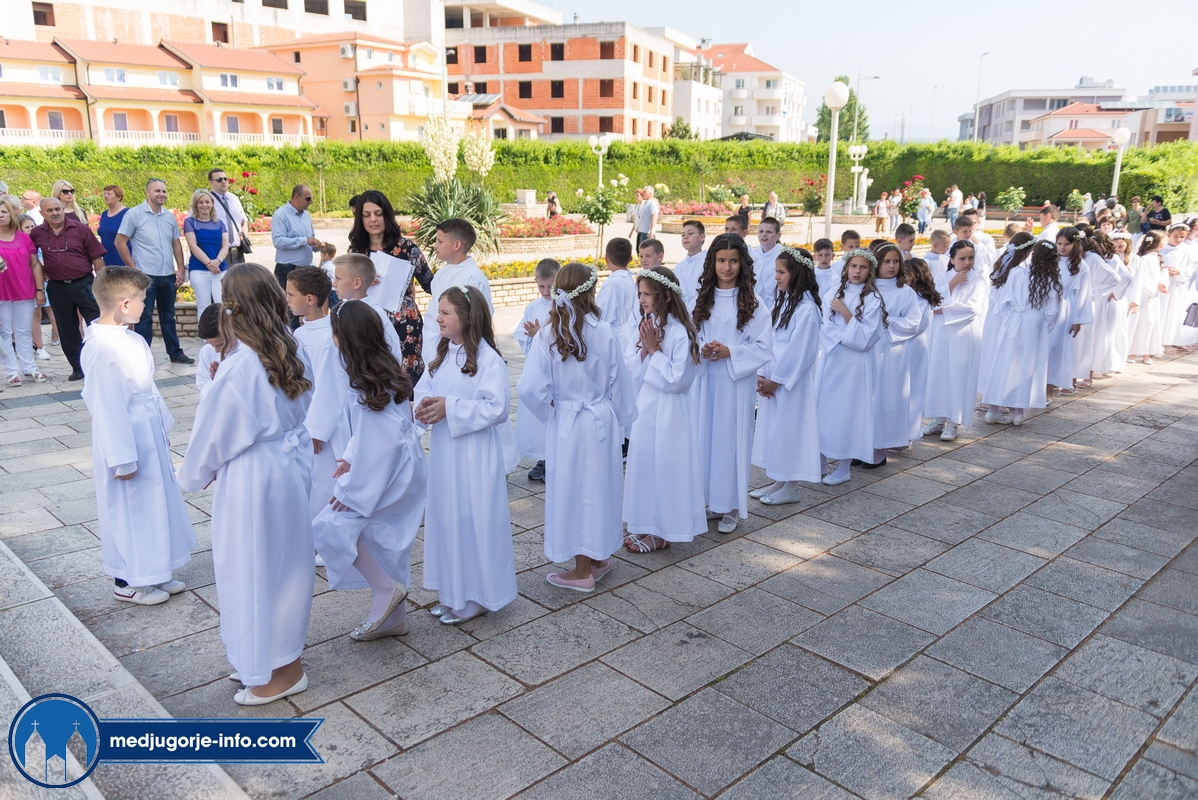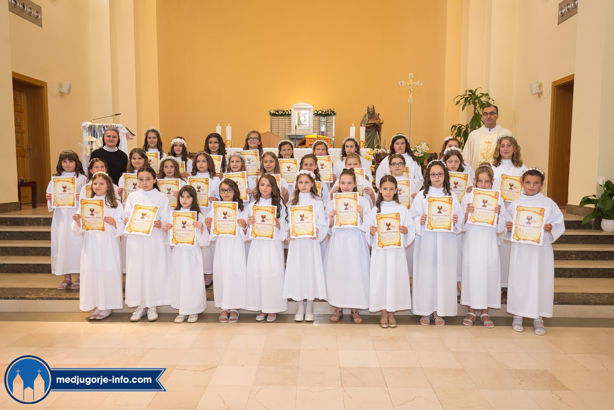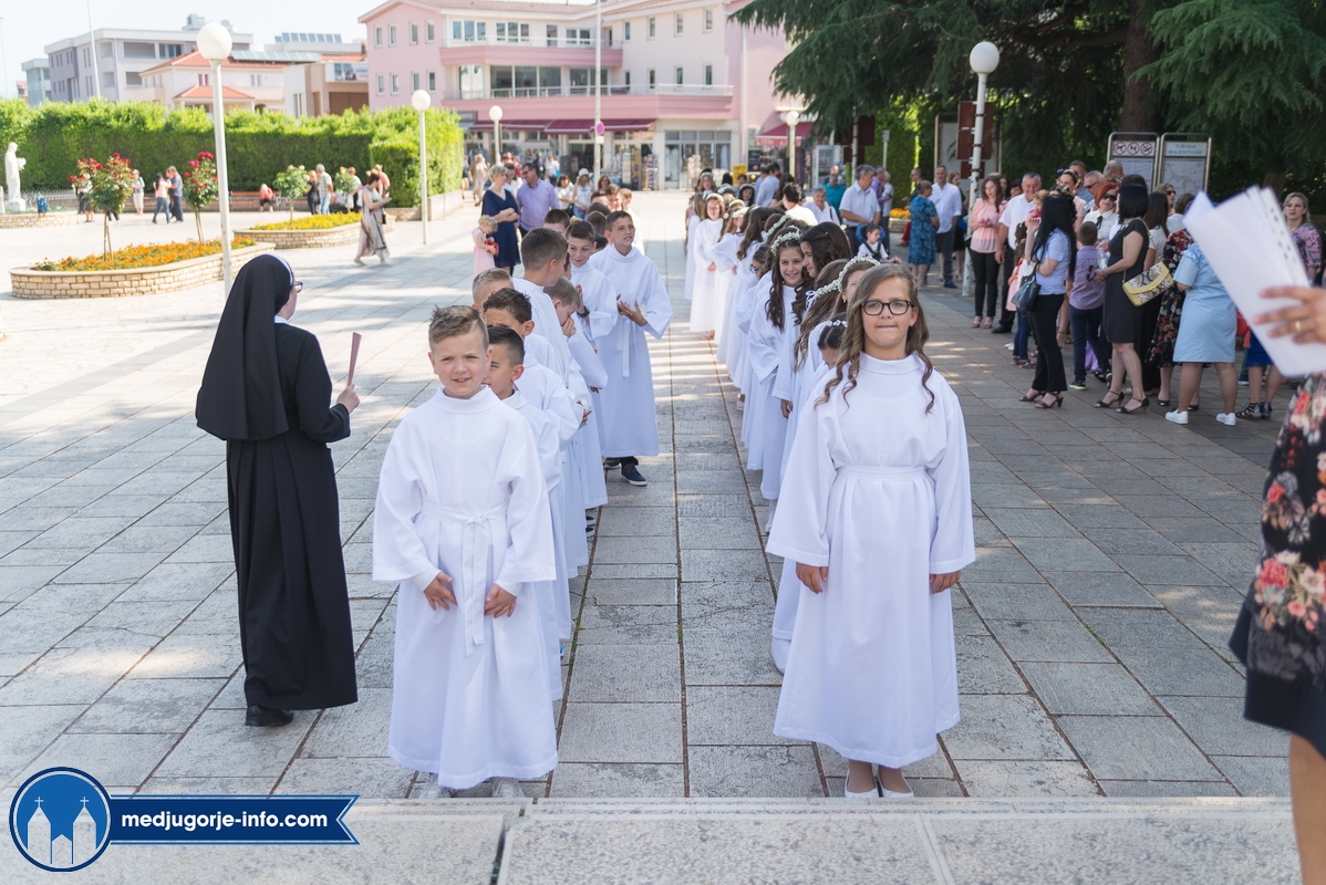 "Draga dječice, kako je lijepo biti danas ovdje u Božjem domu jedni s drugima i primiti Isusa. Danas slavimo svetkovinu Presvetog trojstva, zato smo na početku načinili znak križa. To je jedan Bog, a u sebi je trojstvo", kazao je župnik fra Marinko Šakota.