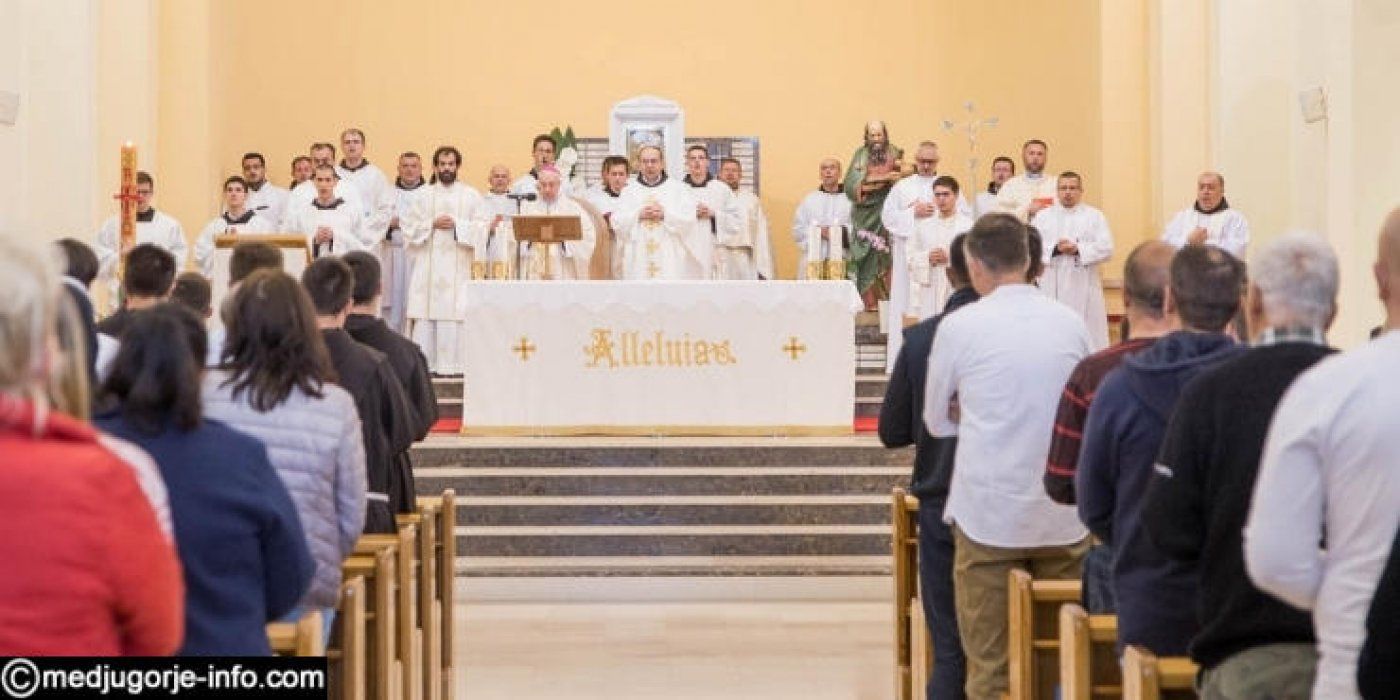 U 19 sati bila je sveta misa koju je predslavio Nadbiskup i Apostolski nuncij u BiH Luigi Pezzuto, uz koncelebraciju provincijala franjevačke provincije dr. fra Miljenka Šteke i međugorskog župnika fra Marinka Šakote i dvadesetak svećenika, te novaka i đakona franjevačke provincije. Evanđelje je čitao đakon fra Antonio Primorac.