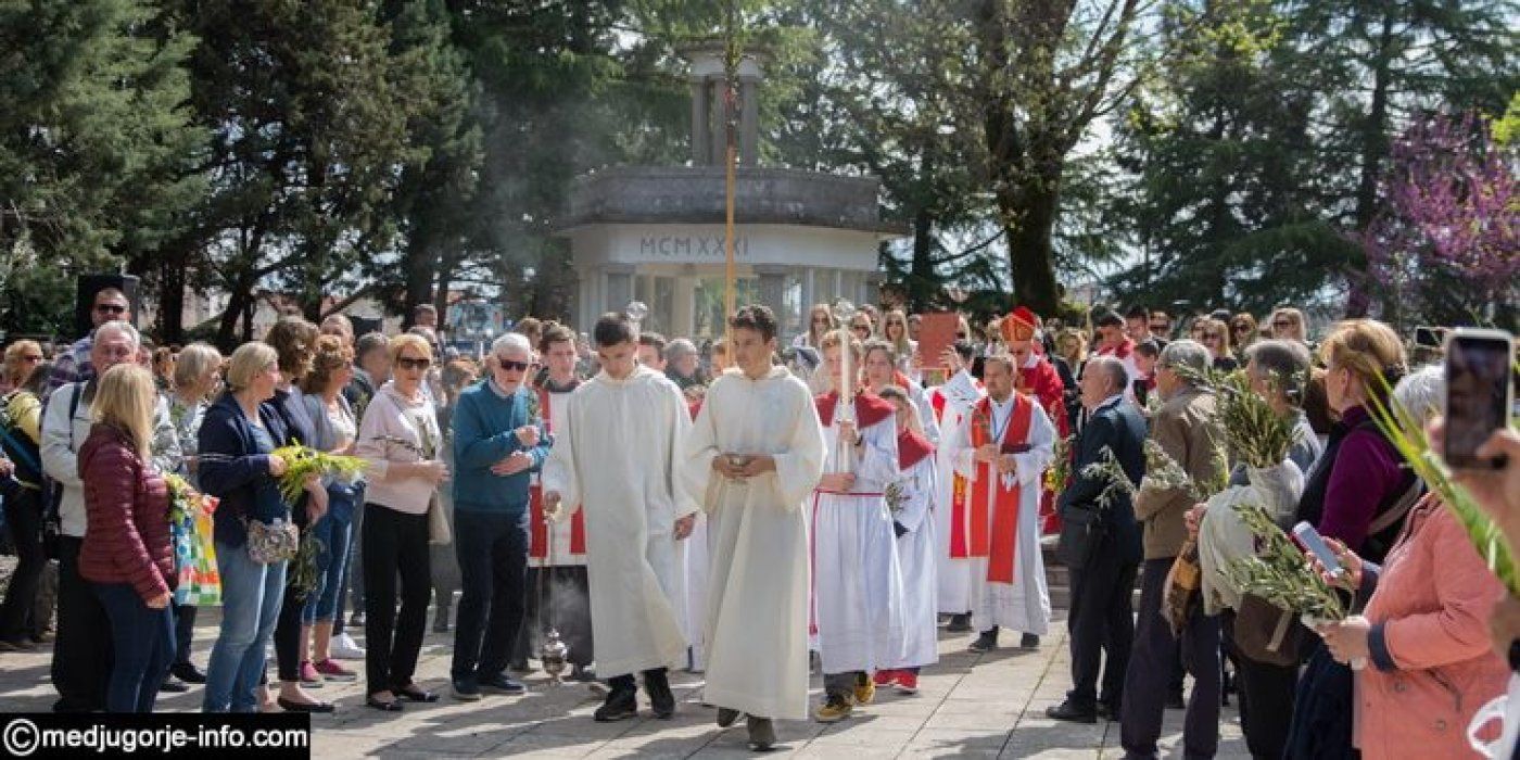 Župljani i mnogobrojni drugi vjernici u Međugorju okupili su se na temeljima stare crkve gdje je blagoslov grančica i procesiju od stare crkve do nove predvodio apostolski nuncij za BiH mons. Luigi Pezzuto. On je predslavio i svetu misu u 11 sati, a u propovijedi je istaknuo: