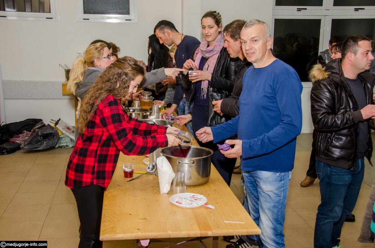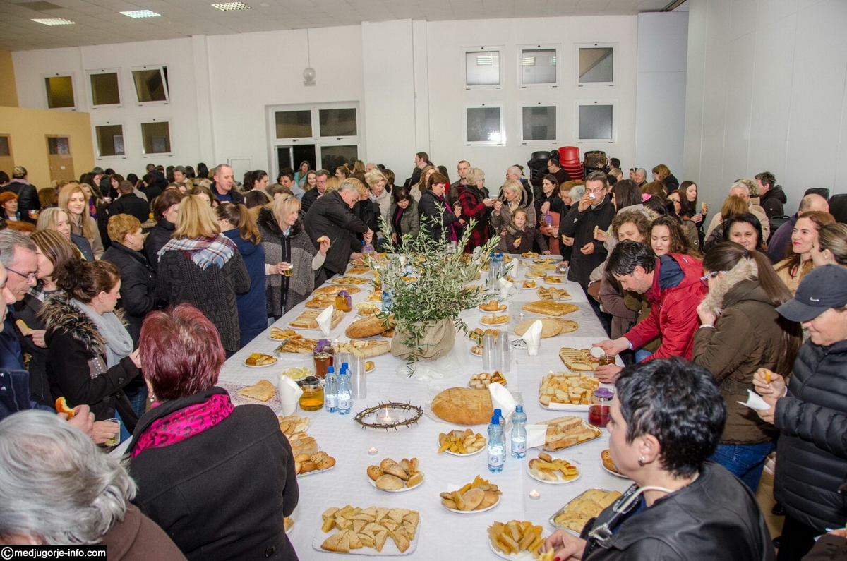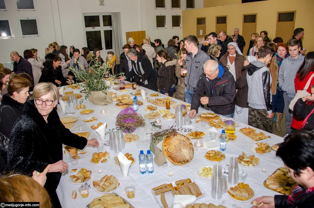 Večer je započela molitvom Krunice u 17h, zatim Svetom Misom u 18h, te na kraju u 19h u dvorani molitvom i meditacijom pod svijećom, koju je predvodio fra Stanko Ćosić. Na kraju večeri susret je završen druženjem mještana u drugom dijelu dvorane, blagovanjem kruha i čaja kojeg su ovoga puta pripremili naši dragi Šurmančani, kako je to izgledalo pogledajte u nastavku: