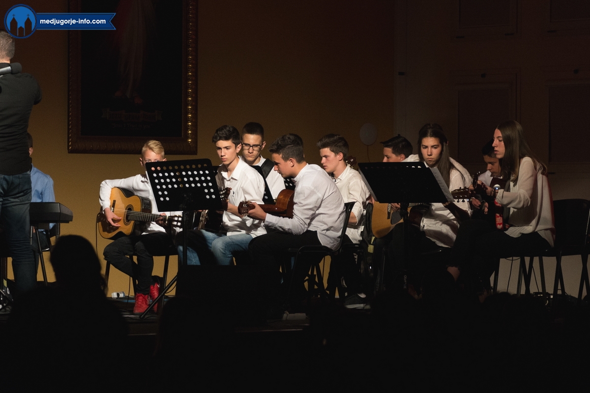 Koncert je održan sinoć, 24. 04. 2018. u Dvorani Ivana Pavla II. u 19.30. Nastupile su klape, tamburaški orkestar, Frama i gitaristi. Bila je ovo uistinu jedna prekrasna večer u kojoj je publika cijelo vrijeme uživala, a roditelji su s ponosno mogli pratiti glazbeni napredak svoje djece. Dio atmosfere pogledajte u fotogaleriji: