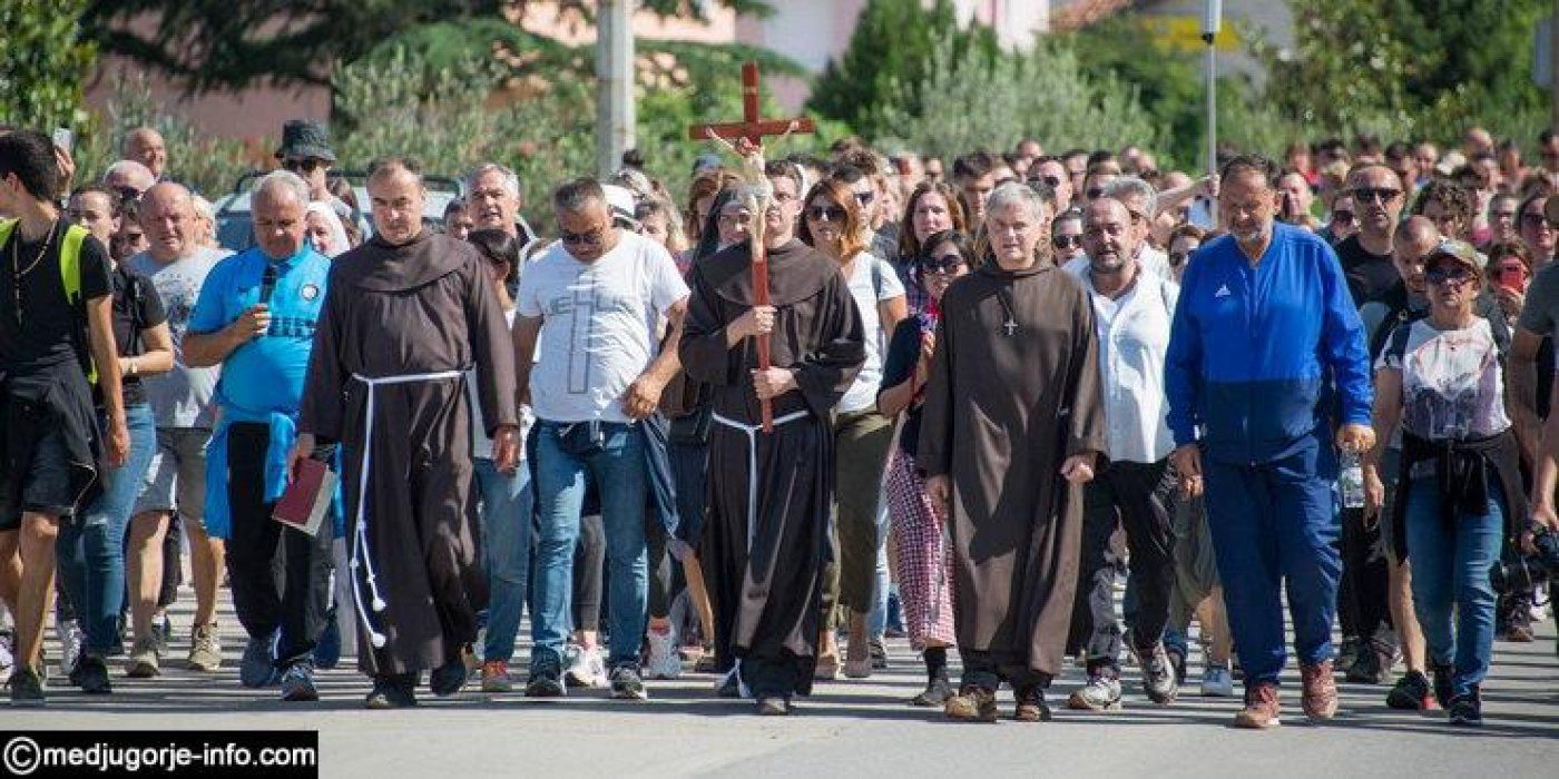 Podsjetimo kako je Hodnja krenula jutros u ranim jutarnjim satima, u 5, 15 okupljanjem župljana koji su se autobusima koje je organizirao župnik ili osobnim automobilima prevezli do samostana na Humcu u Ljubuškom. U 6,00 sati nakon kratke molitve i blagoslova, koje je okupljenima udijelio fra Dario Dodig, humački gvardijan i fra Marinko Šakota međugorski župnik, Hodnja je krenula predvođena KRIŽEM!