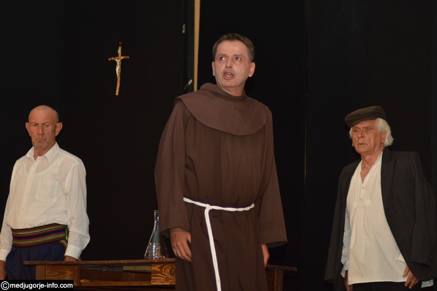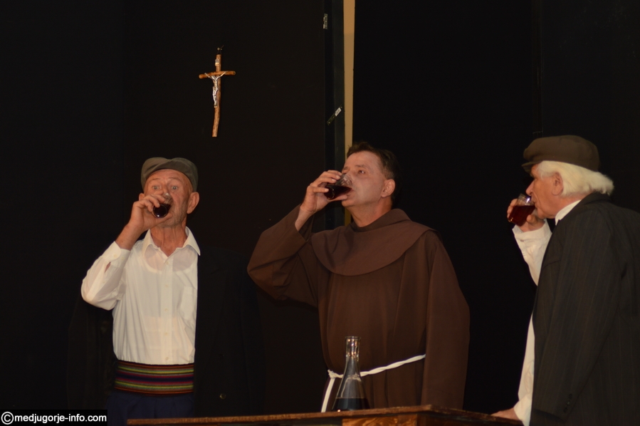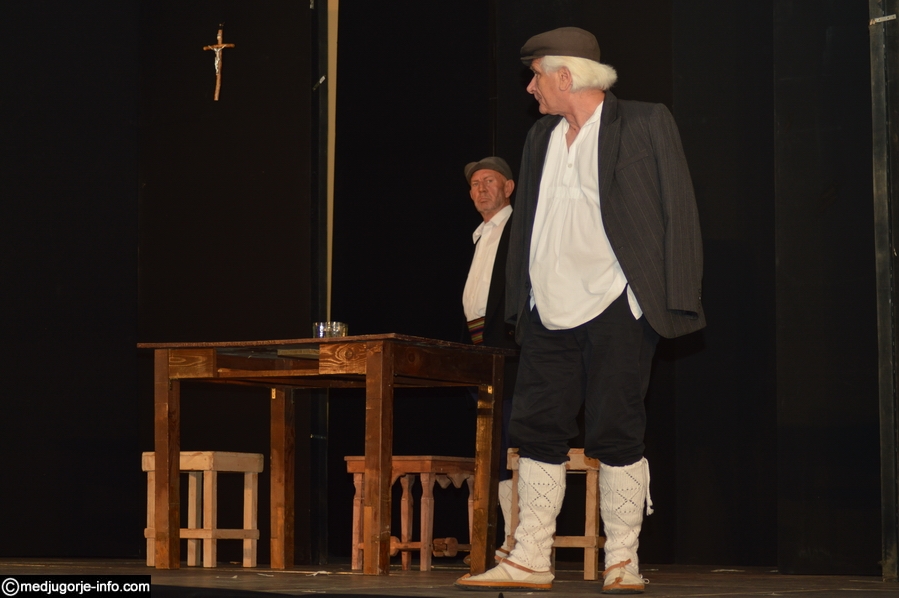 U predstavi se glumili glumci iz HNK-a Mostar, a to su Robert Pehar, Velimir Pšeničnik i Dragan Šuvak, a sve u režiji Dragana Komadine. Predstava je bila bogata humorom ali i poučnom temom, te je publika to znala prepoznati, i nagradila je predstavu dugotrajnim i gromoglasnim pljeskom. Ovu večer uveličalisu i članovi HKUD-a Vionica.