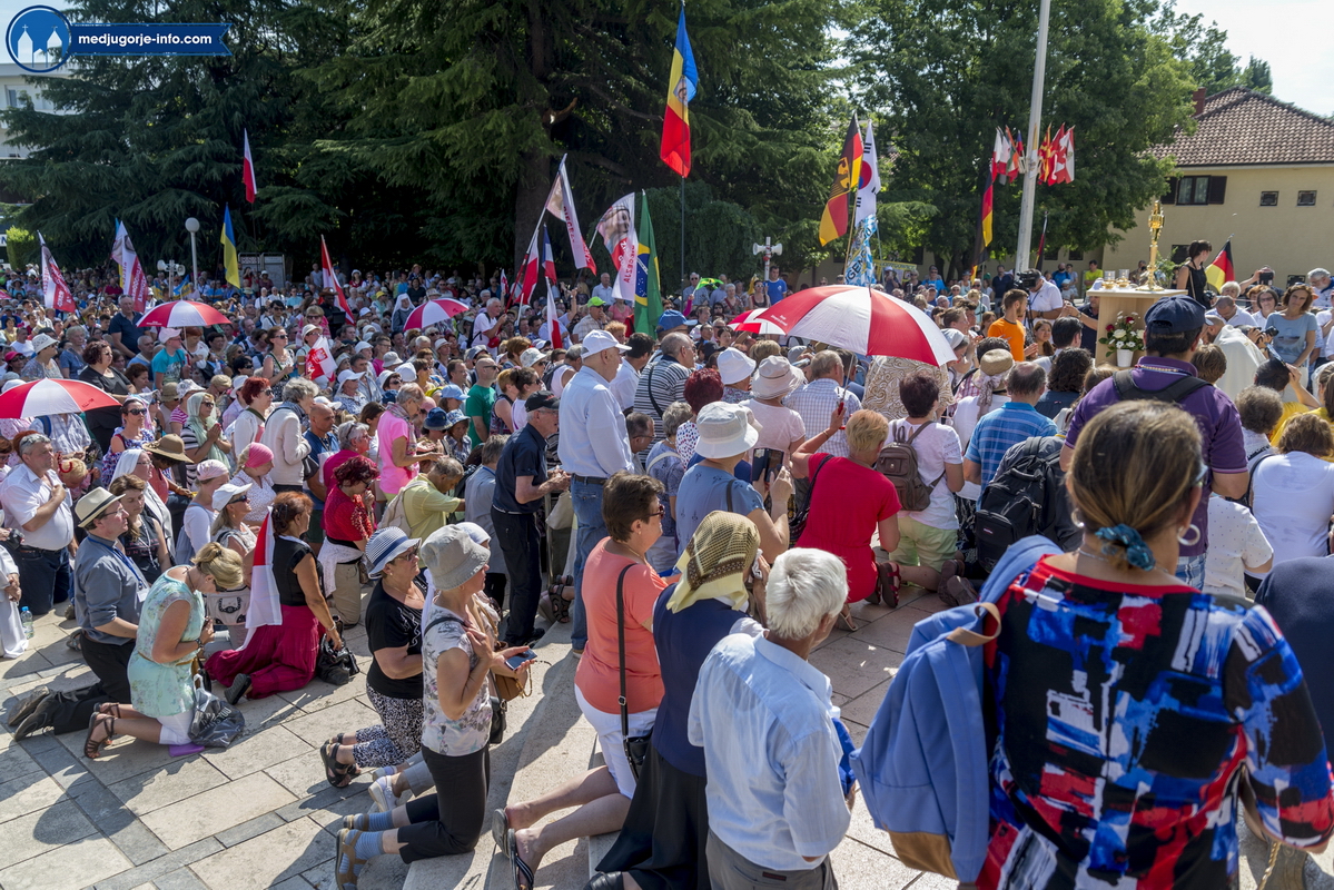 Vjernici su prema običaju molili Krunicu, te pjevali i zahvaljivali Gospi, a na čelu kolone nošen je križ. Mnoštvo hodočasnika nosili su zastave sa svih strana svijeta, te u svojim mislima i molitvama ponijeli želje, zahvale i žrtvu prikazanu Gospi u čast 36. obljetnice ukazanja.