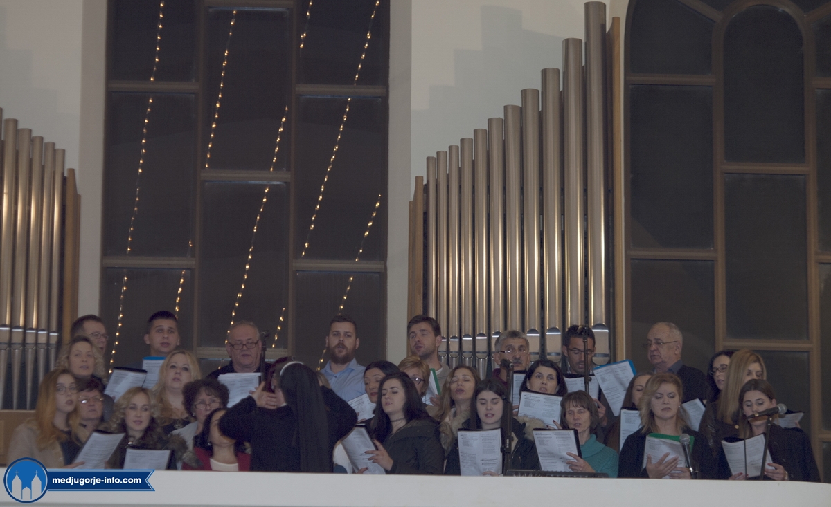 Misno slavlje pjevanjem božićnih pjesama obogatio je veliki crkveni zbor Kraljice mira pod ravnateljstvom časne sestre Irene Azinović.