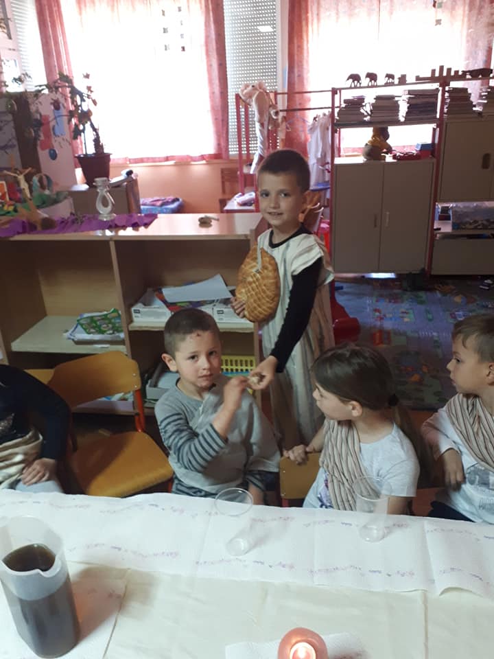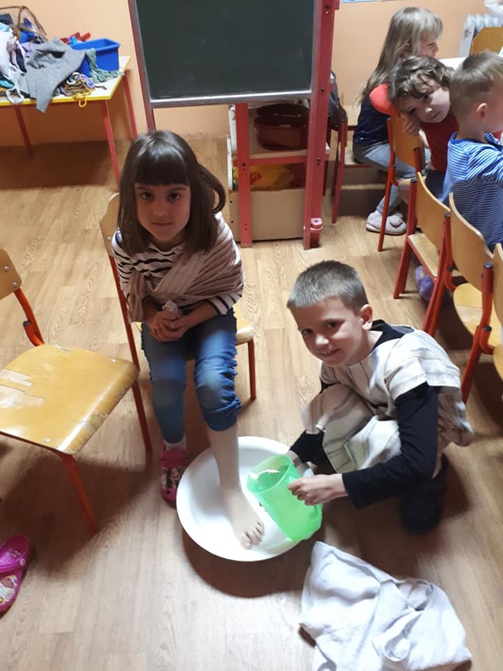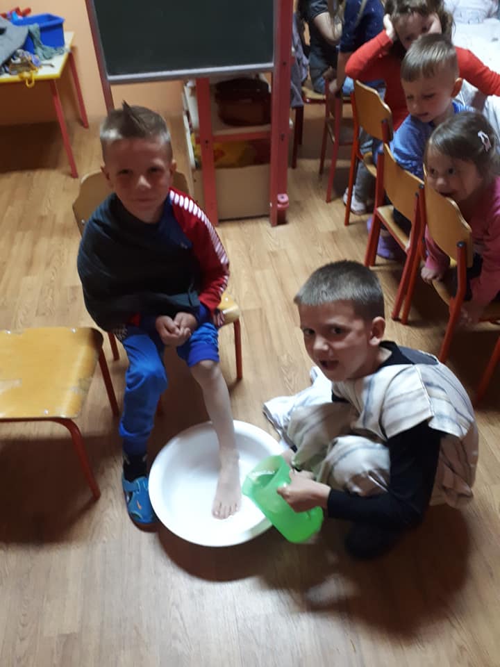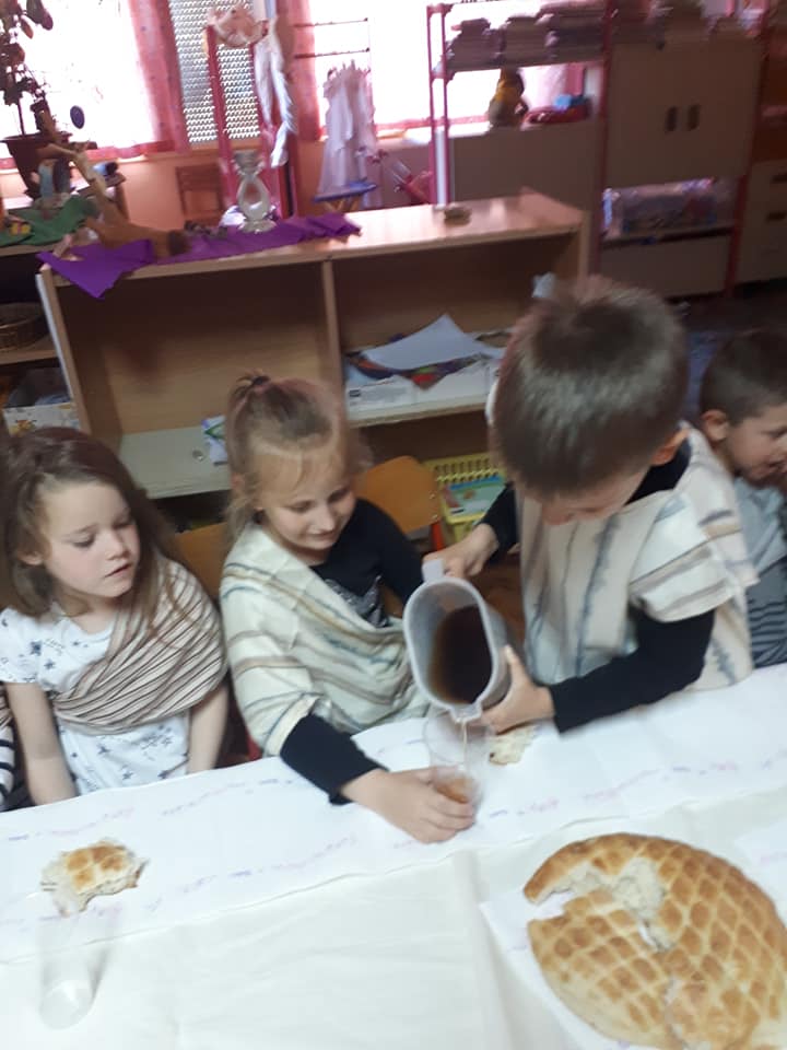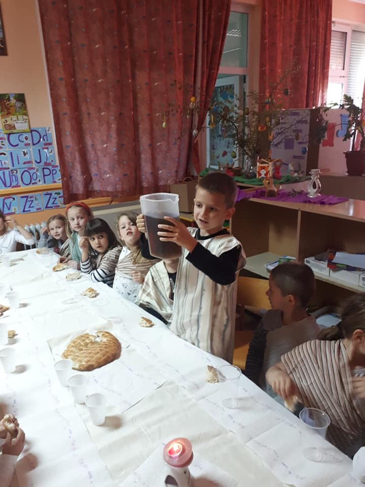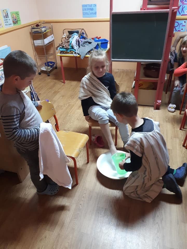 Na Veliki četvrtak djeca su se pripremala za Vazmeno trodnevlje kroz molitvu i čitanje prigodnih Biblijskih priča. U nekim skupinama djeca su teatralno „oživjela“ pravu proslavu posljednju večeru. Obukli su se u kostime apostola, zajedno su blagovali, a zatim im je „Učitelj“ oprao noge. Tako su djeca kroz konkretan primjer i uživljavanje u događaj mogla dublje i posebnije doživjeti što se to slavi kroz ovo tako važno liturgijsko vrijeme.