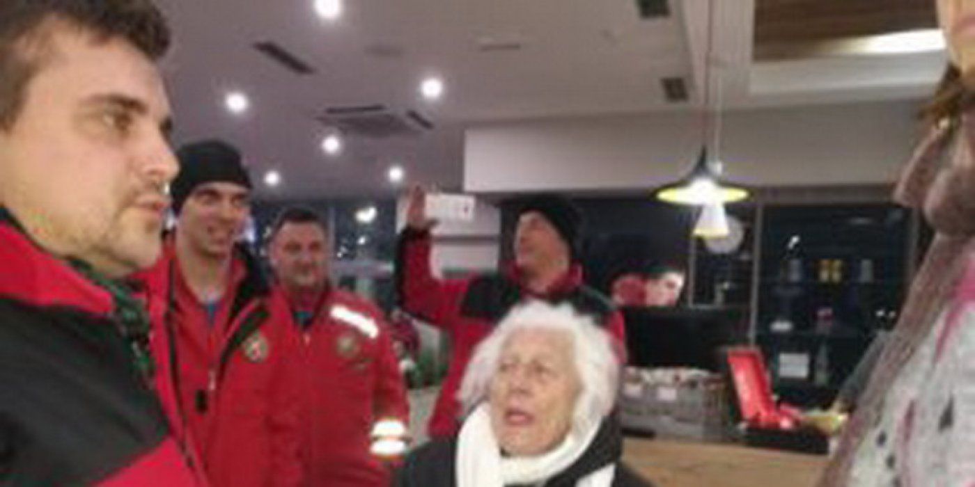 I na kraju, iznenađenje, dok se ekipa okrijepljivala u obližnjem kafiću, stiže nam vijest da nam dolazi bakica, napustila je dom zdravlja i došla popiti piće sa spasiocima.