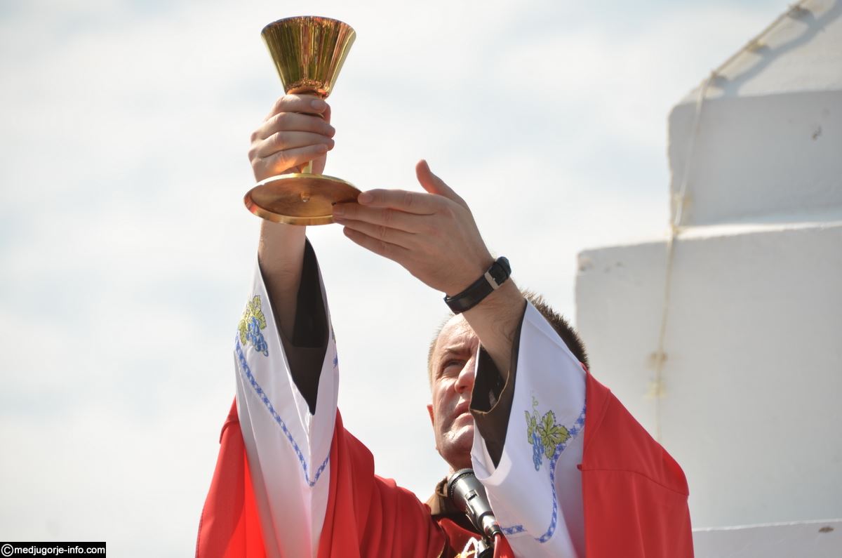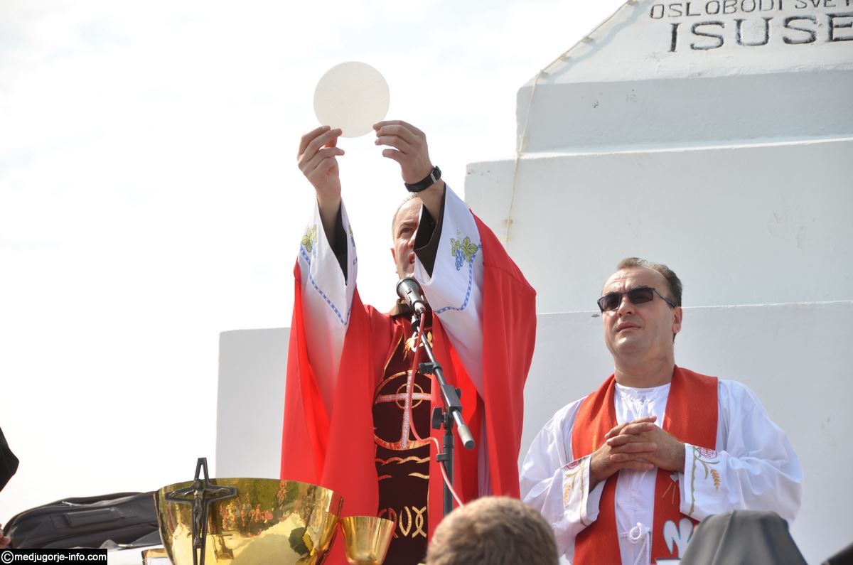 Svetu Misu je predvodio fra Damir Pavić pred tisućama domaćih i stranih hodočasnika. Blagdan Uzvišenja svetog križa u župi Međugorje tradicionalno se slavi prve nedjelje poslije Male Gospe. U čast Svete godine Otkupljenja 1933./34., potaknuti tadašnjim župnikom fra Bernardinom Smoljanom, međugorski su župljani, usprkos velikoj neimaštini, na brdu ponad Međugorja sagradili monumentalni betonski križ. U njegovo su križište ugrađene relikvije Isusova križa dobivene iz Rima. Prvi put je tamo slavljena sveta misa 16. ožujka 1934.. Toga dana promijenjeno je i ime brda: umjesto dotadašnjeg imena Šipovac, brdo se zove Križevac. Kako je to izgledalo danas, pogledajte u nastavku:
