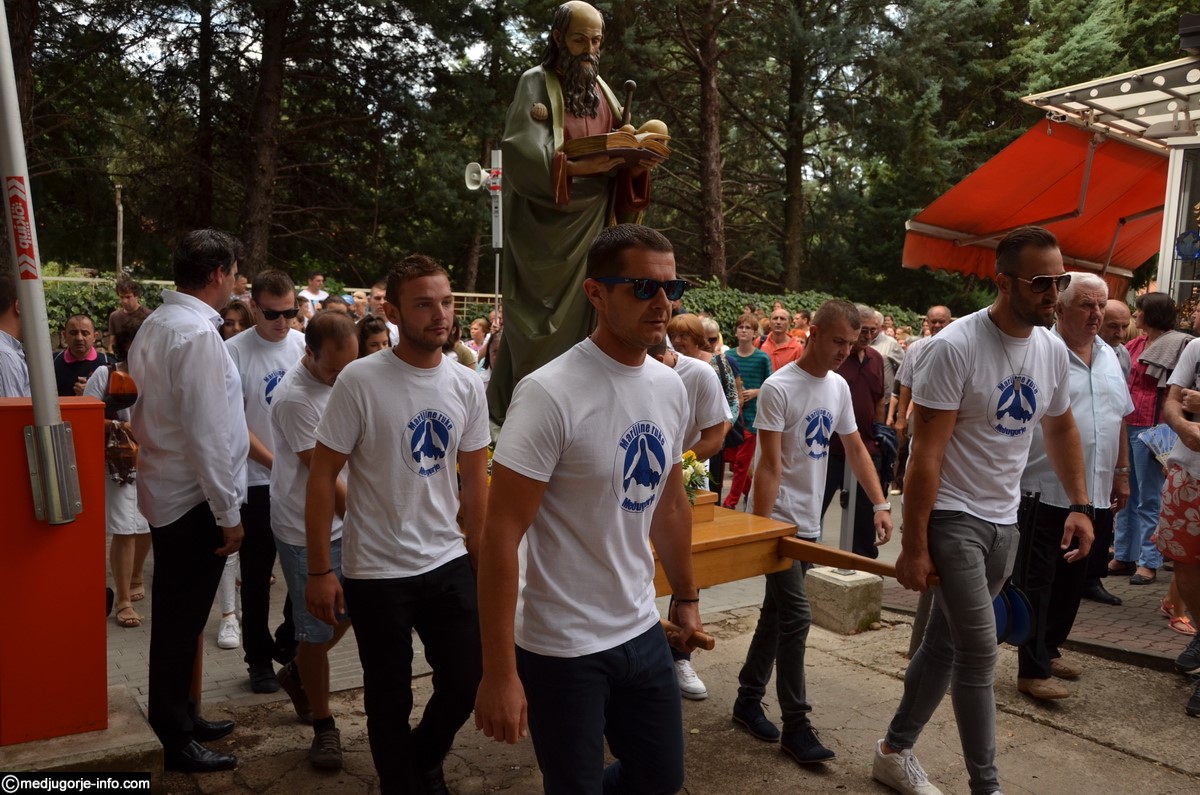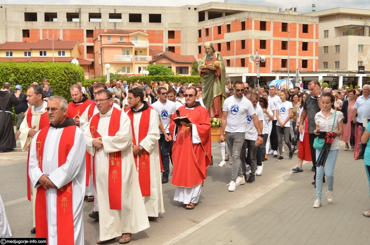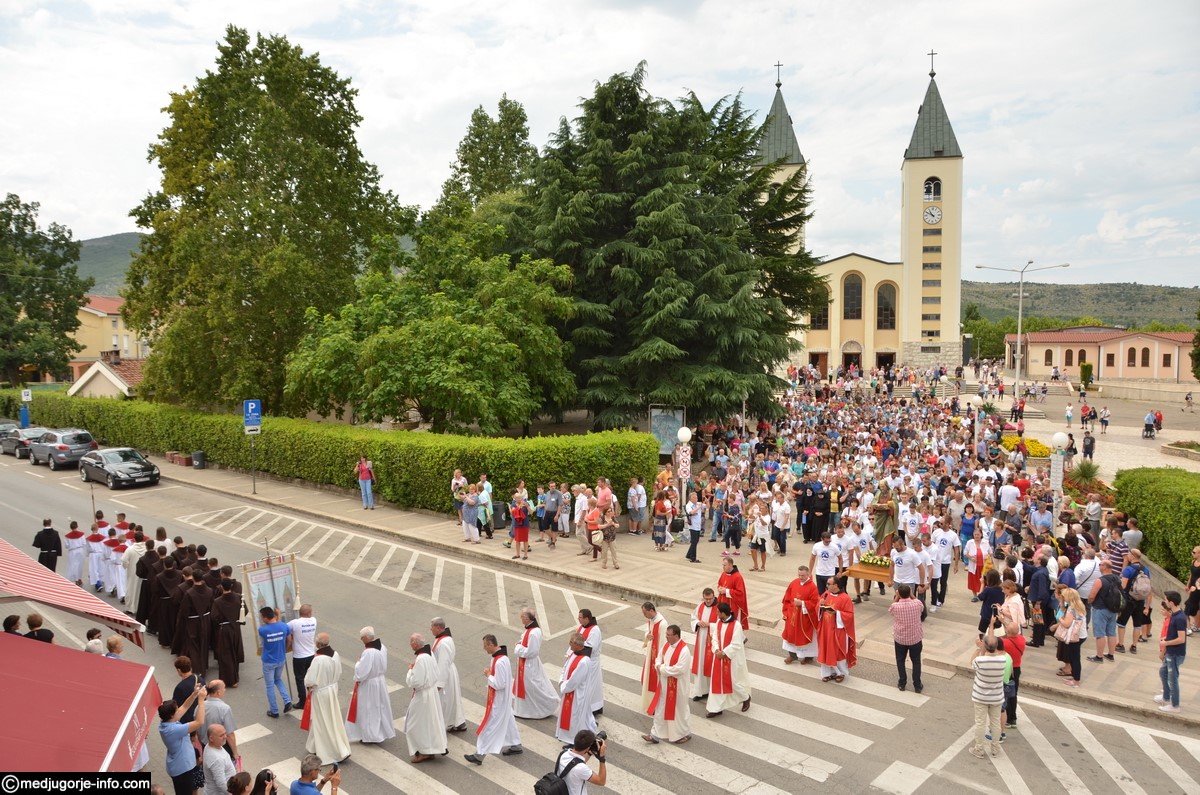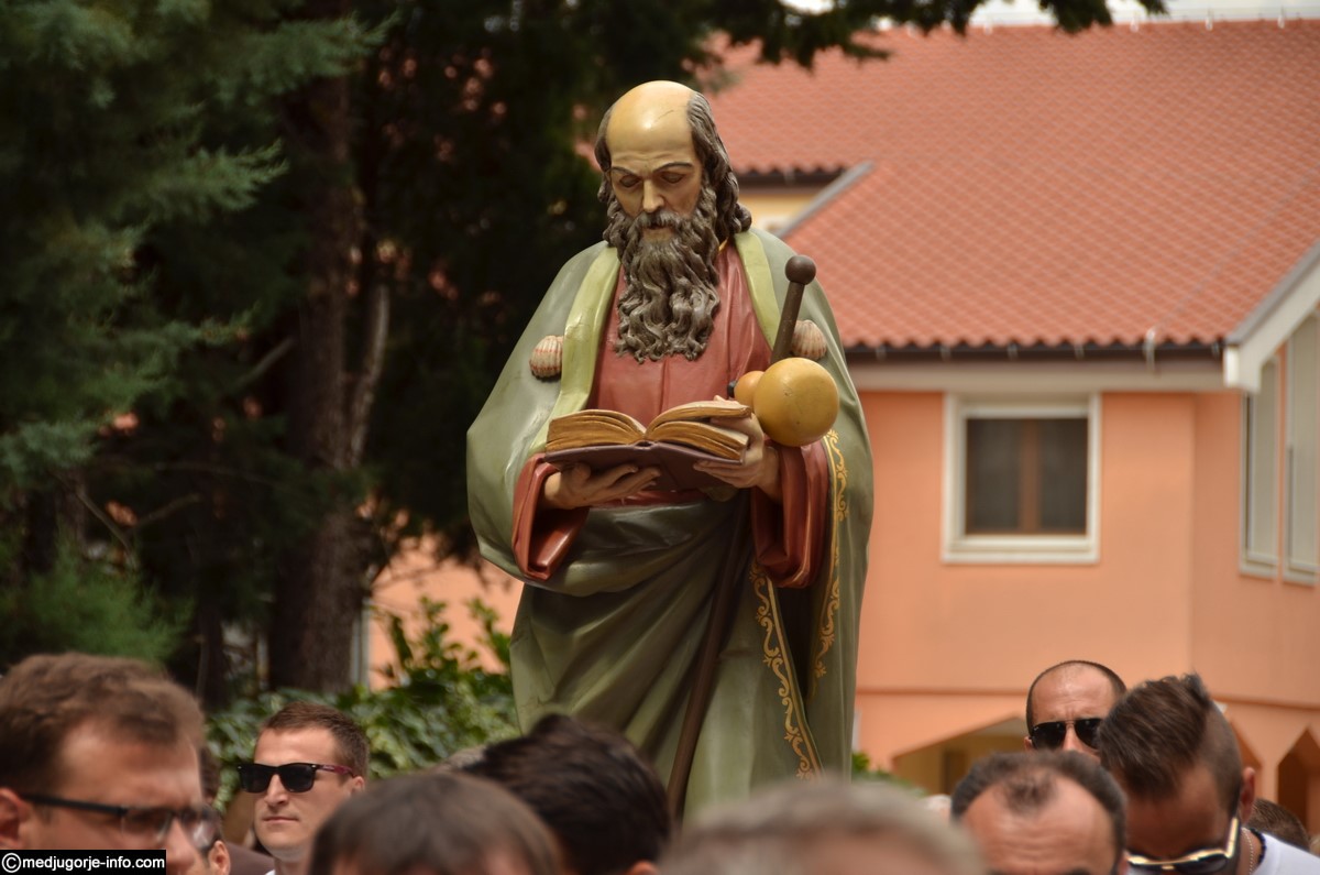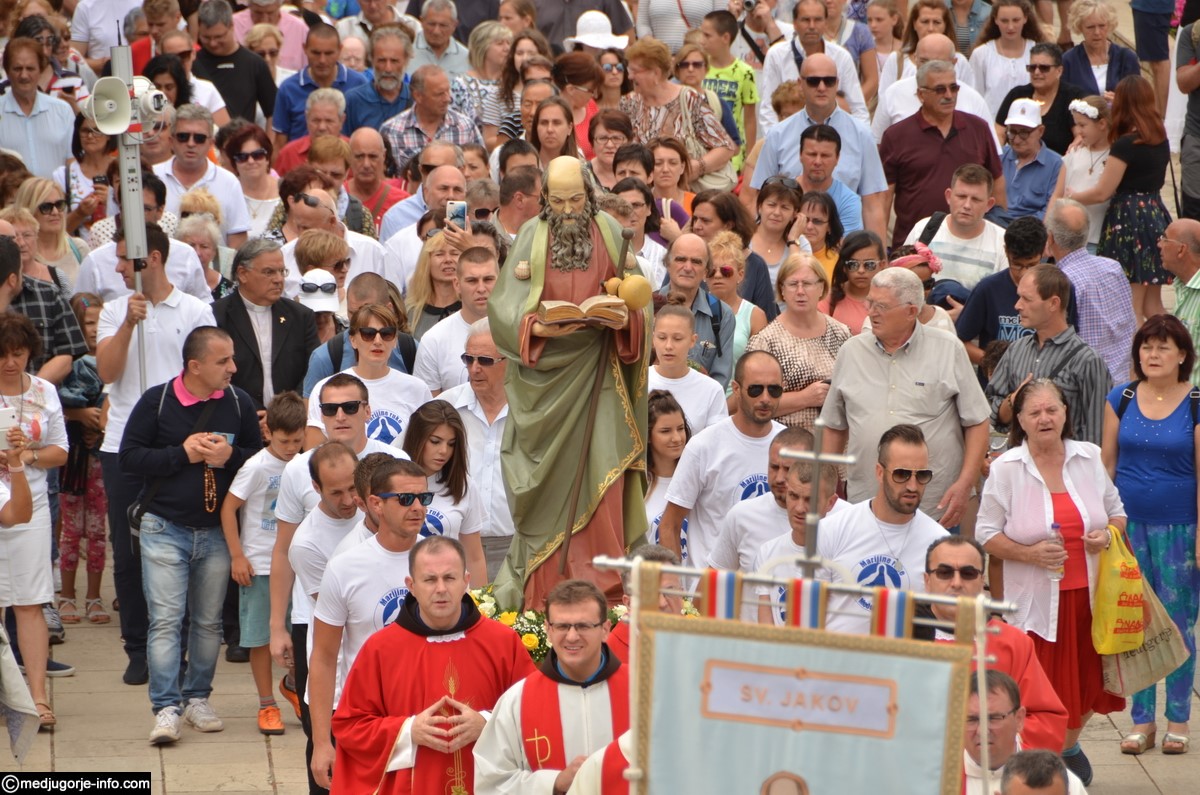 Svečano slavlje započelo je procesijom i nošenjem kipa Svetog Jakova iz župne Crkve ulicama Međugorja, pa sve do Gaja. Kip su ove godine nosili članovi udruge za potrebite “Marijine ruke”. Svetu Misu, pred mnoštvom hodočasnika i župljana, predvodio je don Ljubo Planinić.