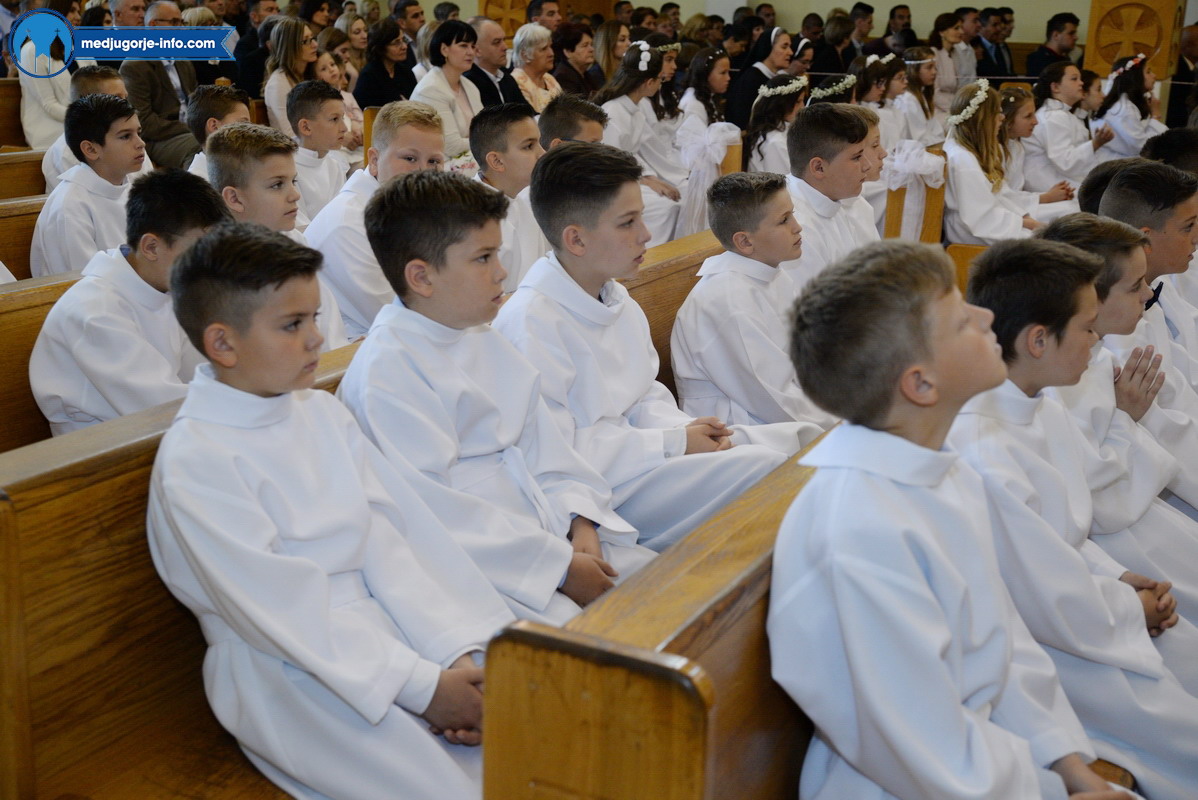 Po završetku svete mise sve nazočne, a pogotovo prvopričesnike je pozdravio naš župnik fra Marinko Šakota te zahvalio svima koji su pridonijeli da današnji dan prođe u veličanstvenom i dostojanstvenom ozračju. Kako je to danas izgledalo, pogledajte u nastavku: