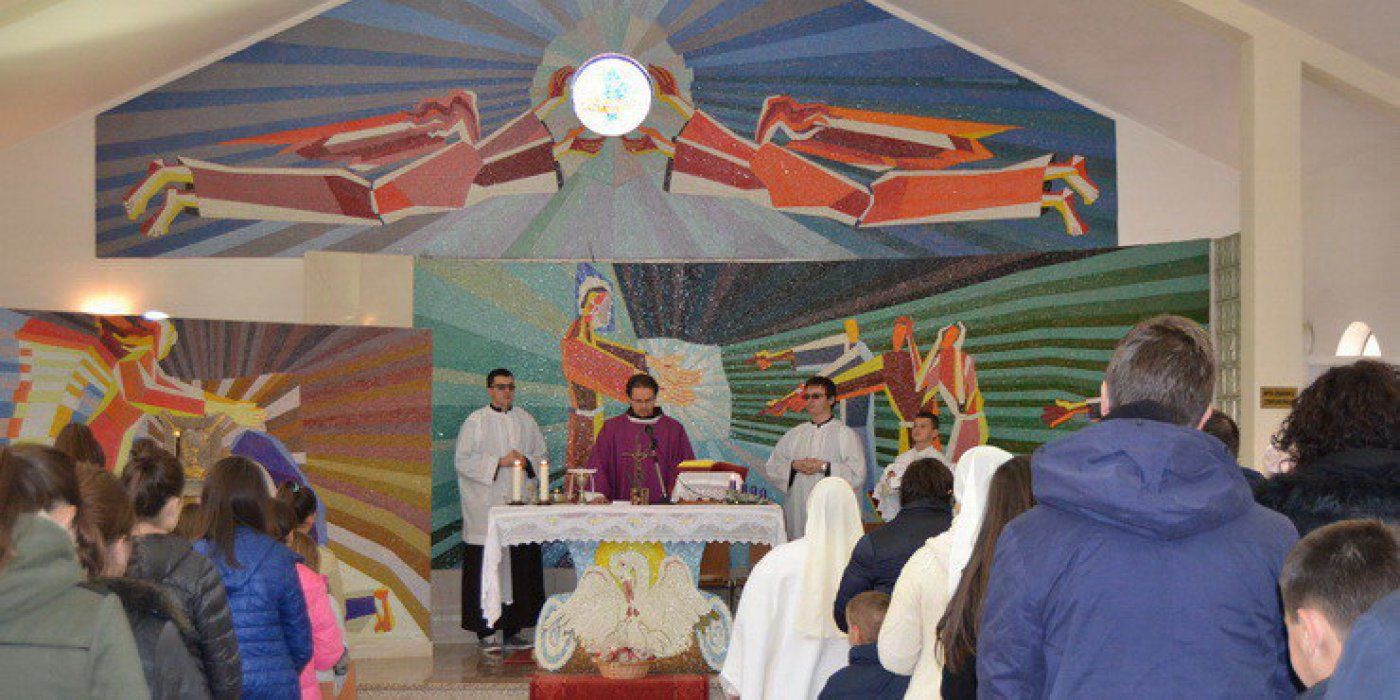 S molitvom i u radosnom bratskom druženju, stigli su najprije u Vionicu pokraj Međugorja gdje su posjetili obiteljski centar Ivan Pavao II. sestara misionarki ranjene obitelji. Svečano misno slavlje predslavio je voditelj puta, fra Danijel Rajić na kojem su sudjelovale časne sestre i djeca koja borave u tom centru. Na koncu mise, mladi su imali priliku čuti o načinu života u centru kao i svjedočanstva Božje providnosti i milosti koja se tu događaju. Potom je uslijedio zajednički ručak i druženje s djecom koja su ostavila dubok dojam na mlade.