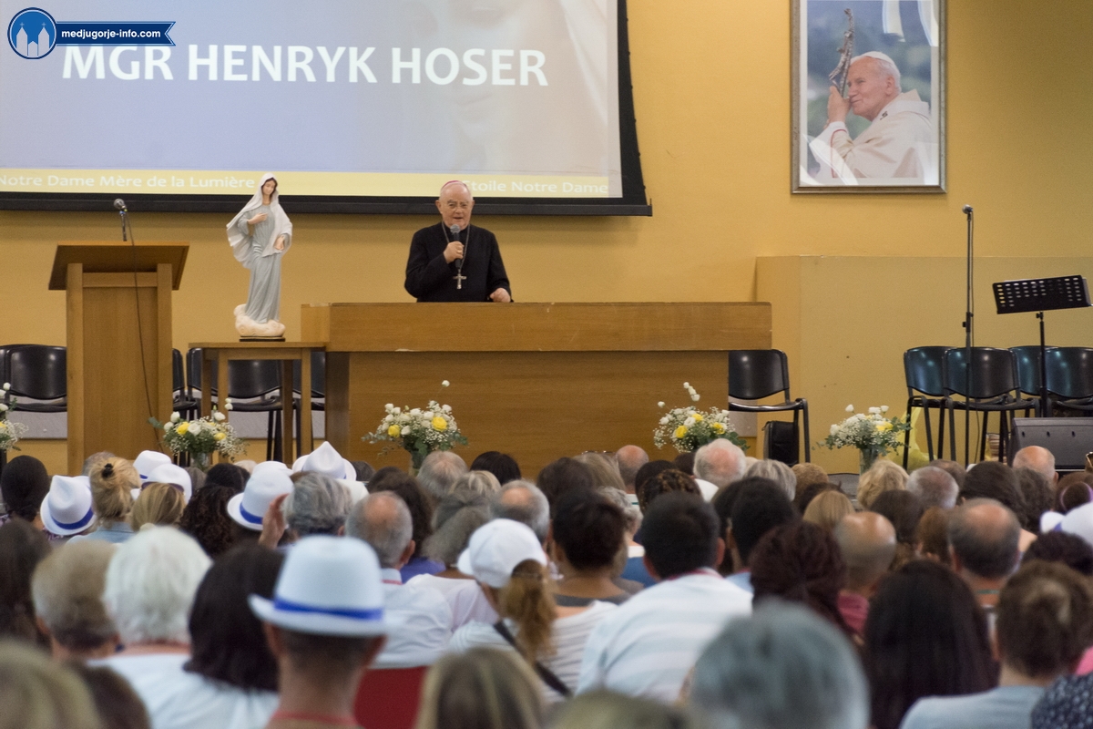 U četvrtak 16. kolovoza prisutnima se obratio i Mons Hoser koji je u svojoj katehezi govorio o svim Marijanskim ukazanjima u svijetu. Ohrabrio je prisutne da nastave hodočastiti u Međugorje ističući ponovno kako je upravo njegova prisutnost ovdje jamac istinitosti marijanskog kulta, molitve i pastorala koji se ovdje živi.
