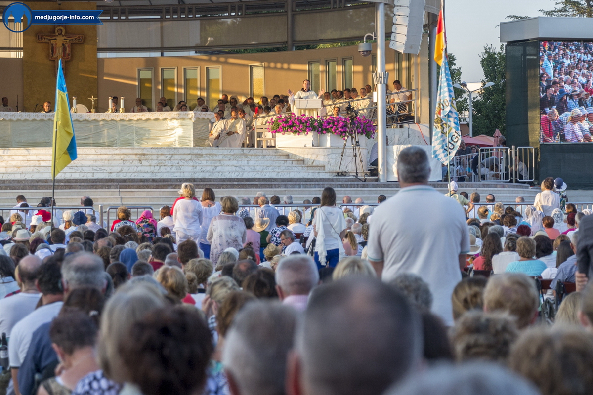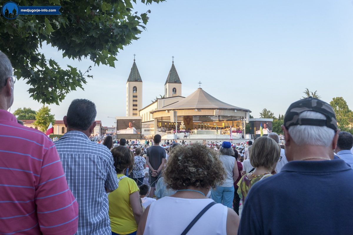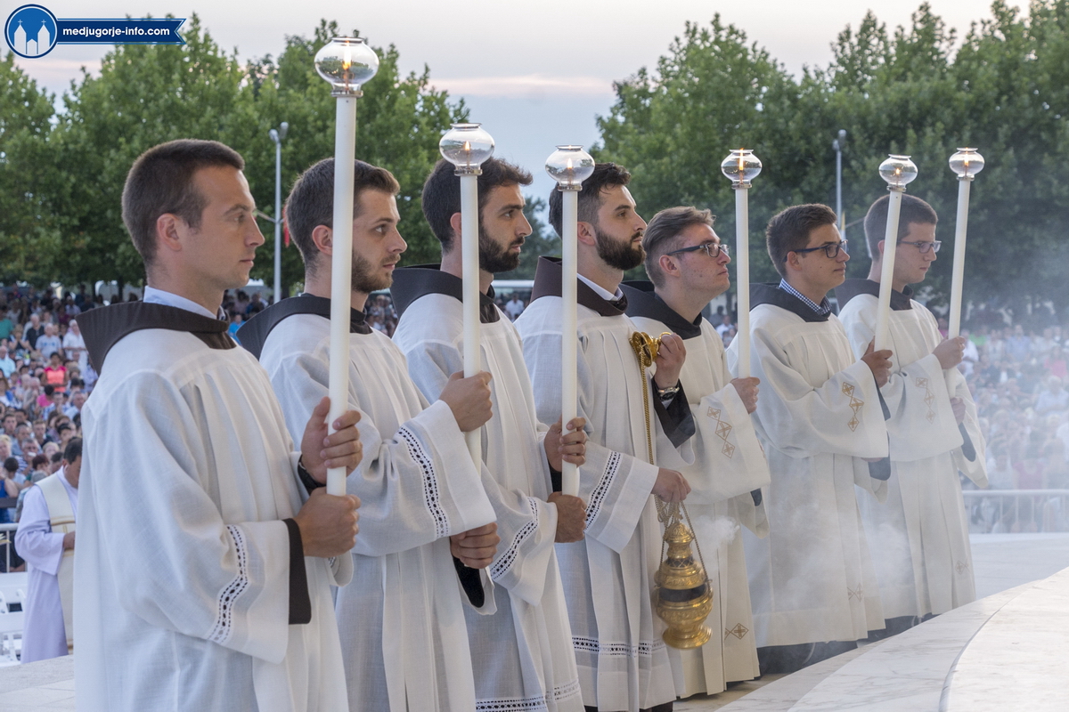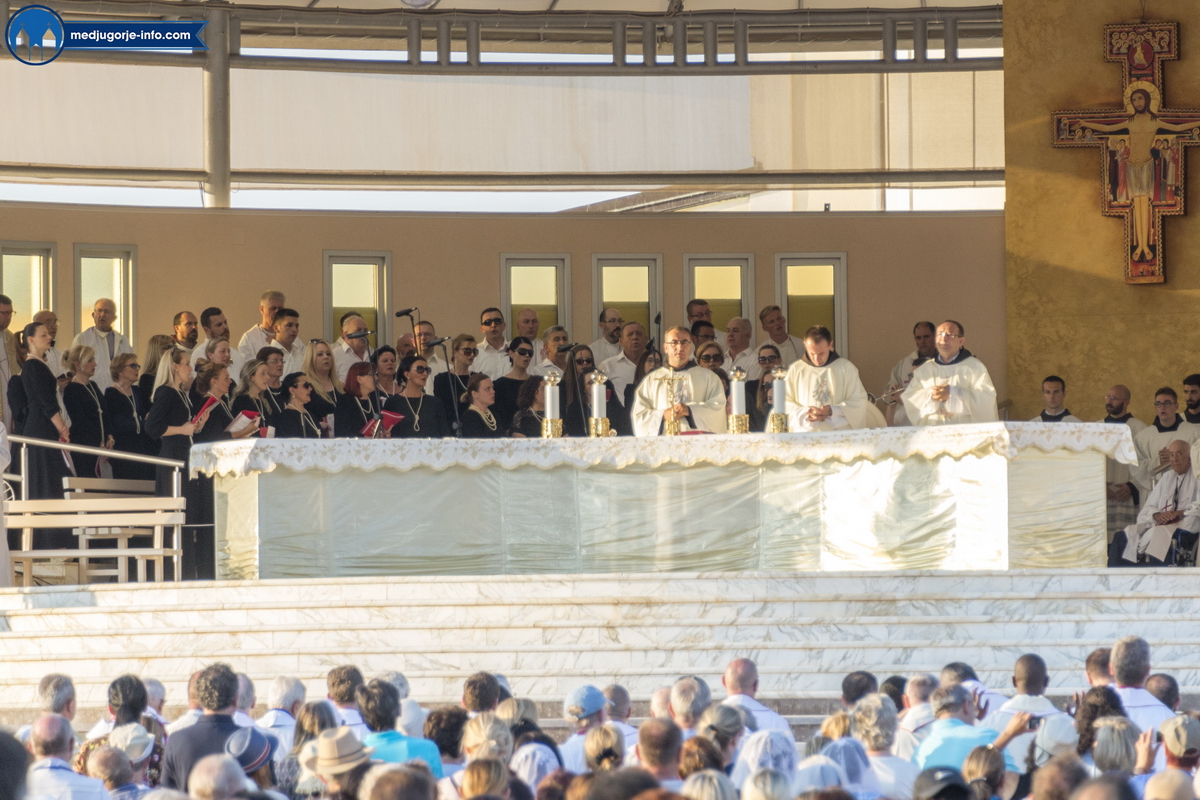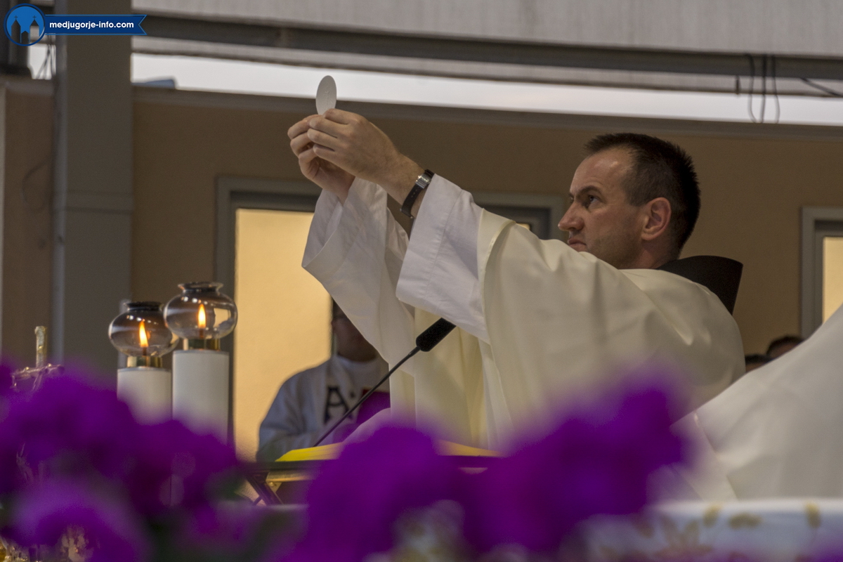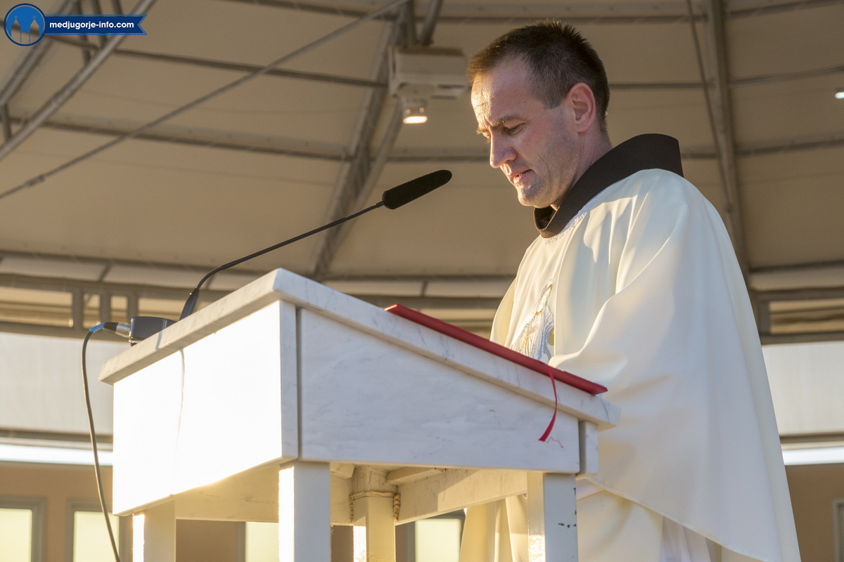 Večernju svetu misu na vanjskom oltaru međugorske župne crkve predslavio je fra Damir Pavić, tajnik Provincije Bosne Srebrene, uz koncelebraciju 190 svećenika. Krunicu od 18 sati predmolio je fra Josip Marija Katalinić
