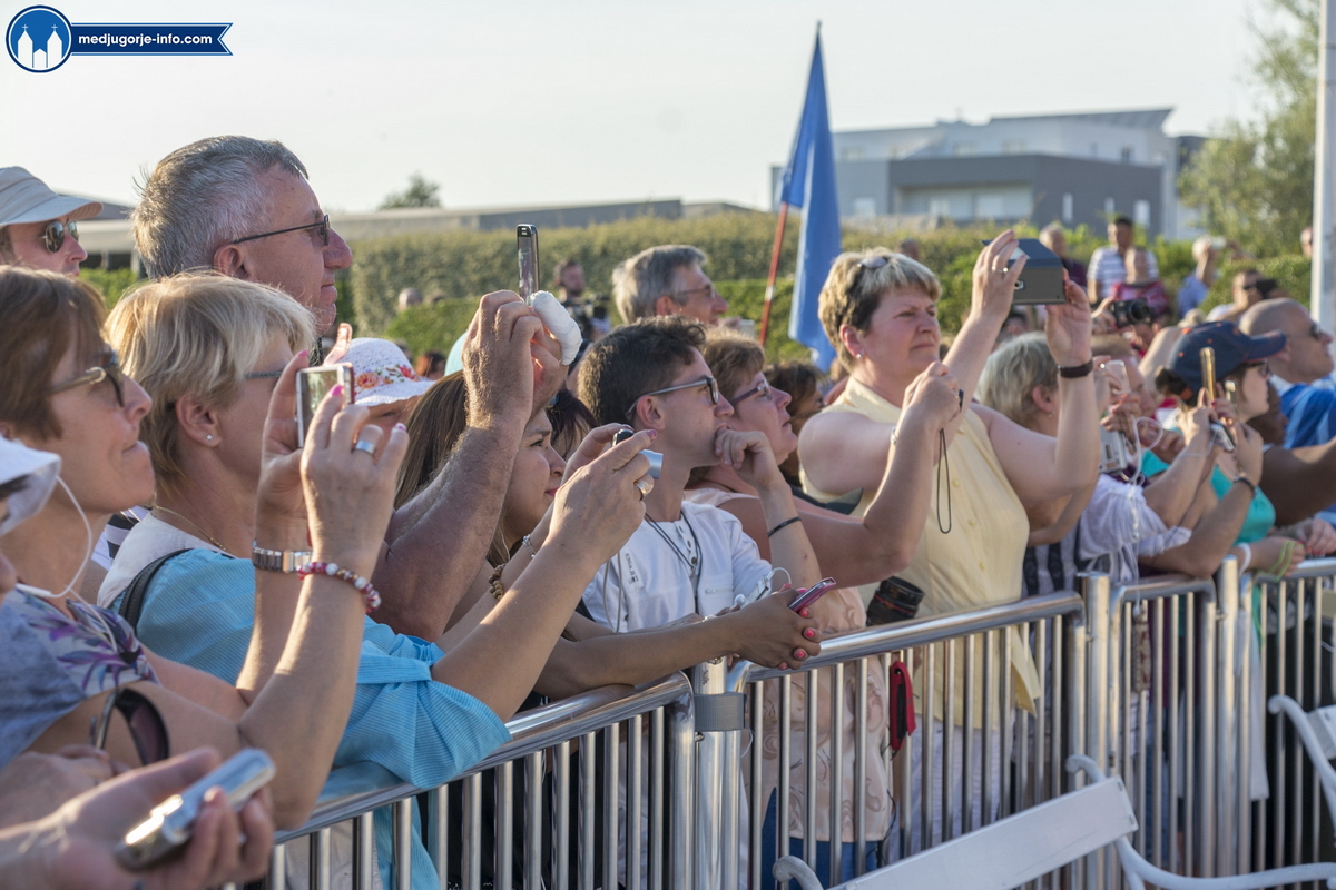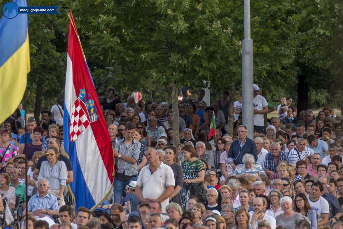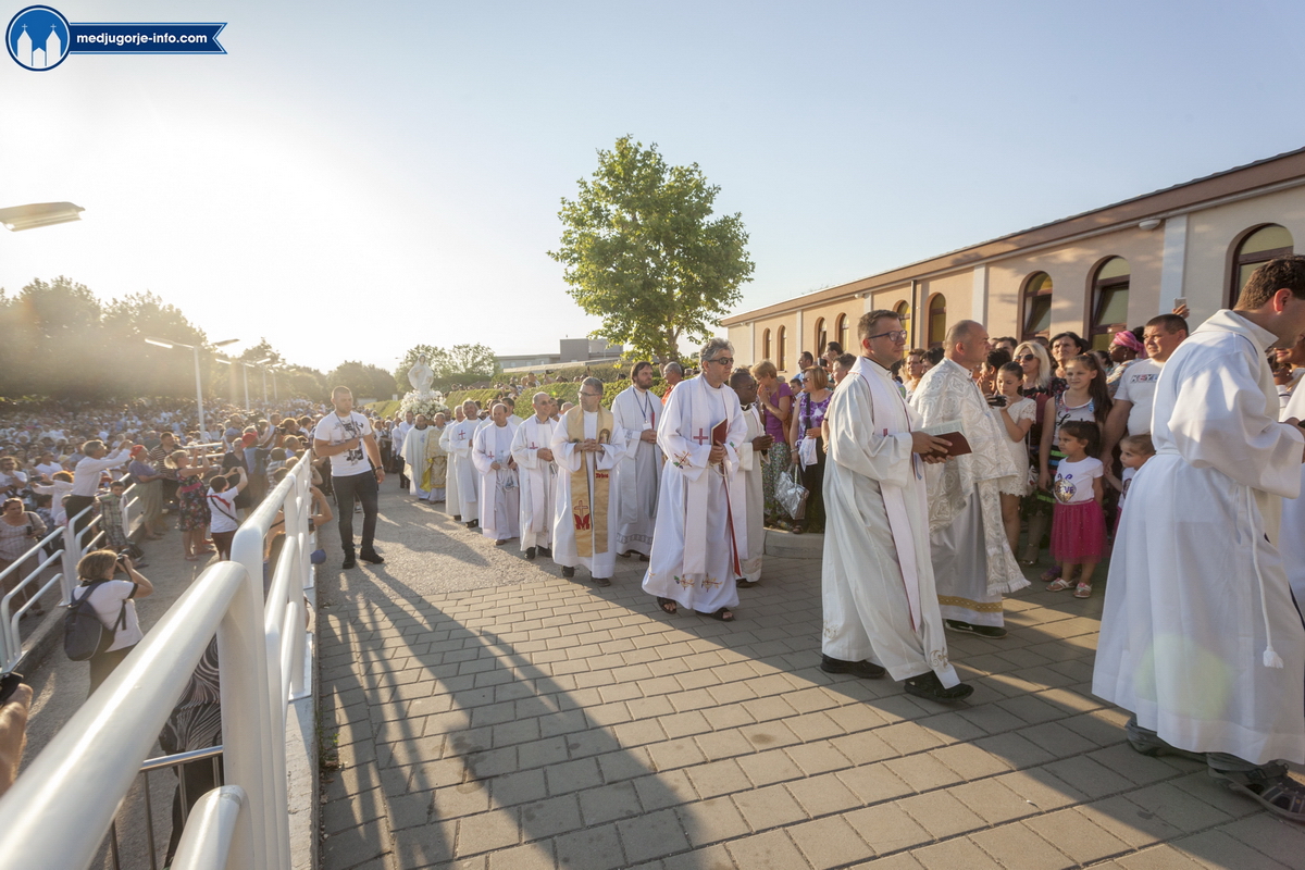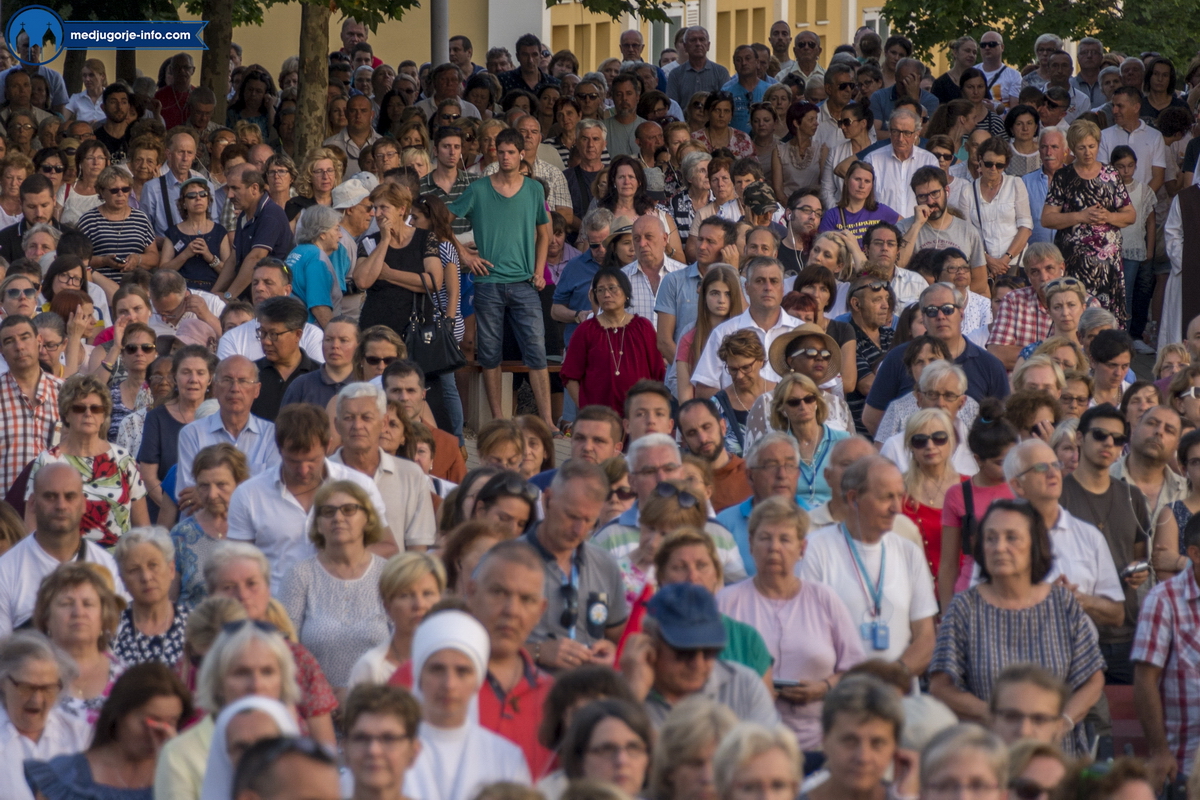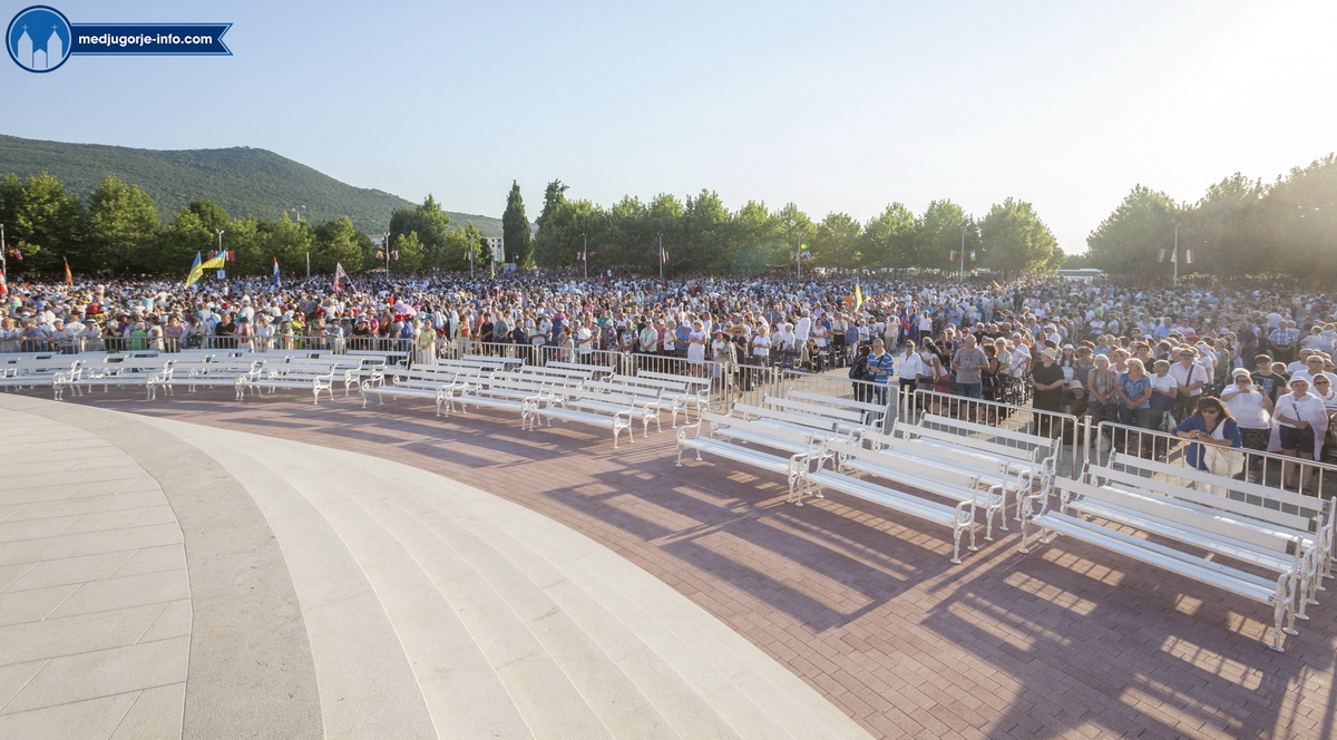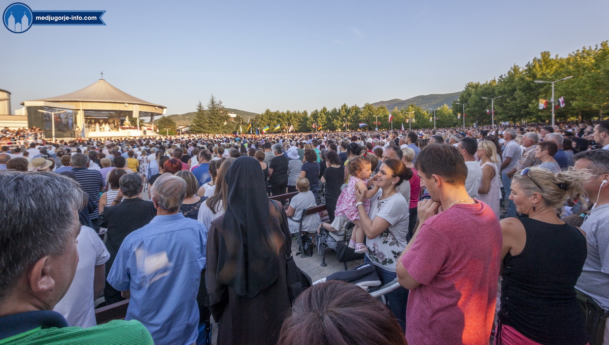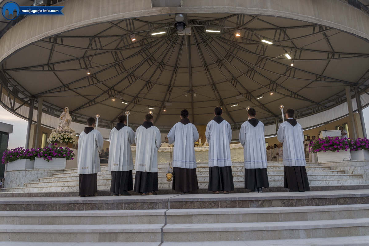 Večernju svetu misu na vanjskom oltaru međugorske župne crkve predslavio je fra Damir Pavić, tajnik Provincije Bosne Srebrene, uz koncelebraciju 190 svećenika. Krunicu od 18 sati predmolio je fra Josip Marija Katalinić