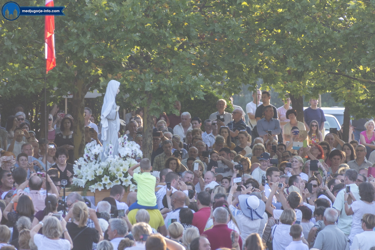 Osim uobičajenim prometnim sredstvima prijevoza, zamjetljiv broj hodočasnika u Međugorje je pristigao pješice, kako bi ispunili svoje zavjete Kraljici mira i zahvalili za udijeljene milosti. Od samoga jutra svećenici su bili na raspolaganju za sakrament sv. Ispovijedi. Misna slavlja na hrvatskome jeziku slavljena su u 5, 6 ,7, 8, 9, 11, a središnji večernji molitveno-liturgijski program počeo je u 18 sati molitvom krunice i nastavio se svetom misom u 19 sati i cjelonoćnim Klanjanjem.