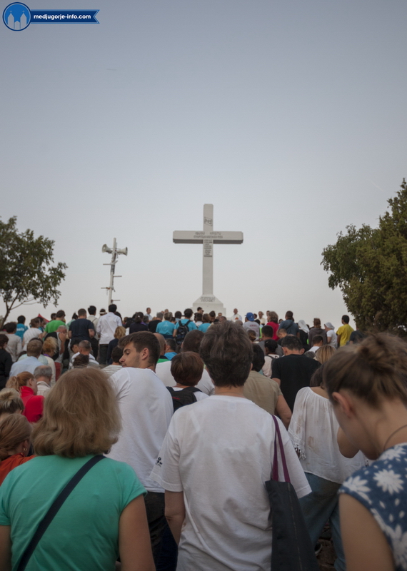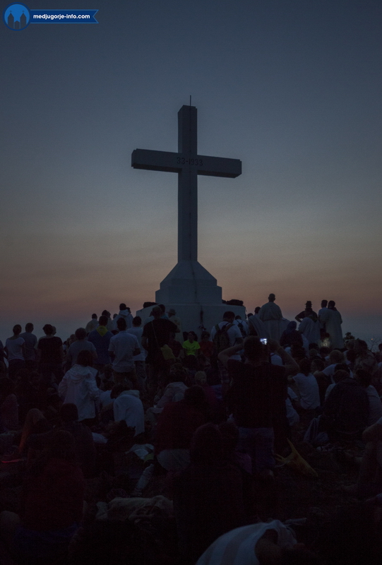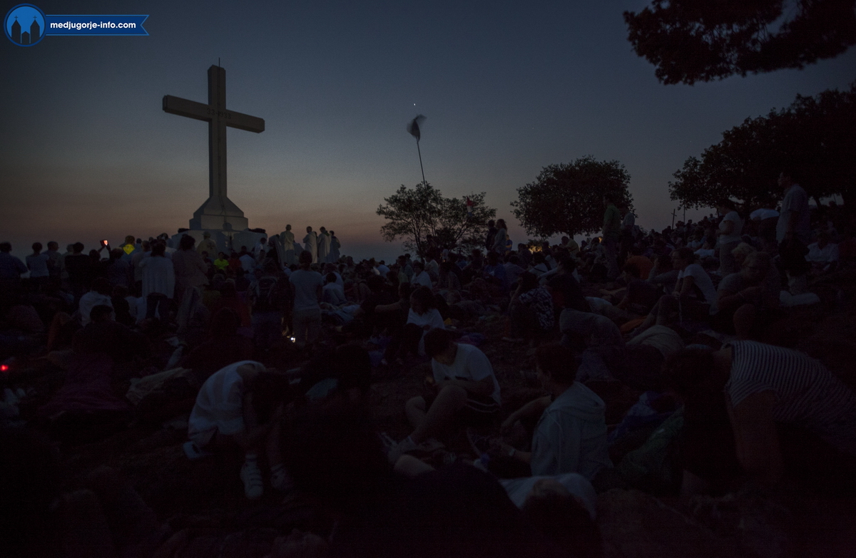 Klanjanje pred Presvetim Oltarskim Sakramentom u Međugorju, u kojem sudjelule nekoliko desetaka tisuća mladih.