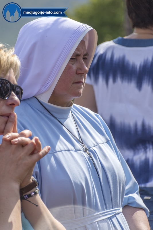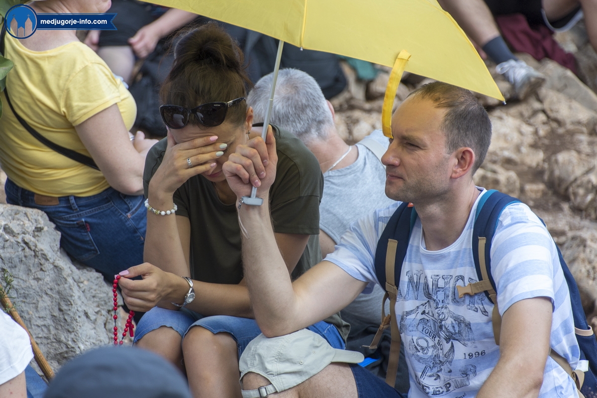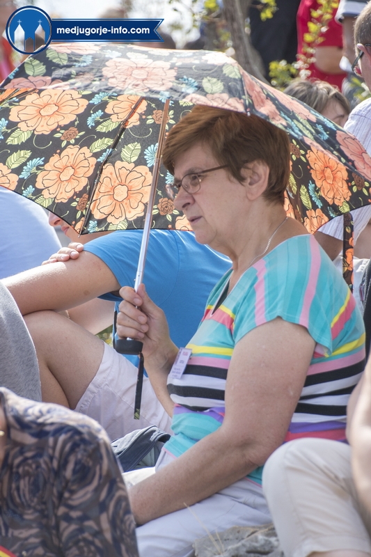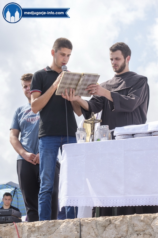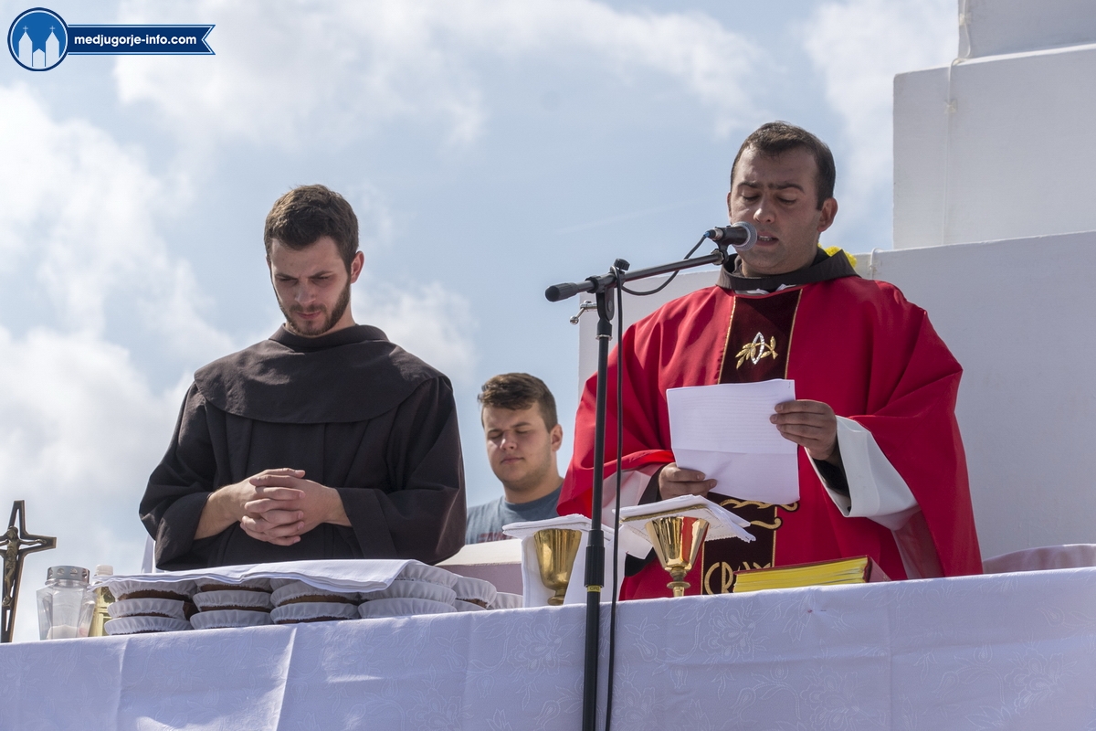 I danas se na Križevac penjalo mnoštvo vjernika, doduše ne tako brojni kao proteklih godina. Oblaci su mjestimično zakrivali sunce pa je ugodno vrijeme bez kiše dozvolilo fra Antoniju Šakoti da neometano predslavi sv. Misu u 11 sati i okupljenim vjernicima uputi nadahnute riječi ohrabrenja.