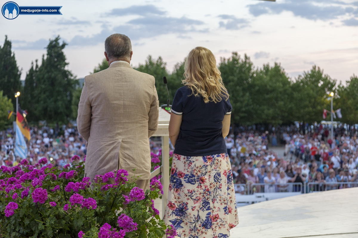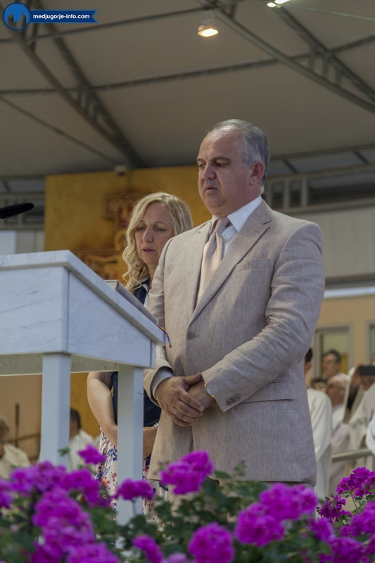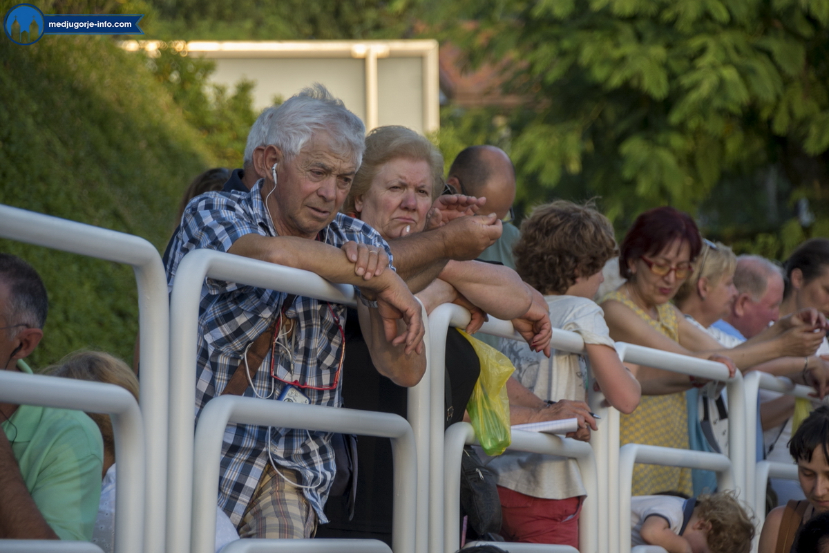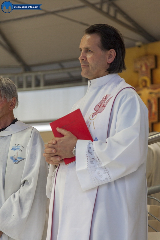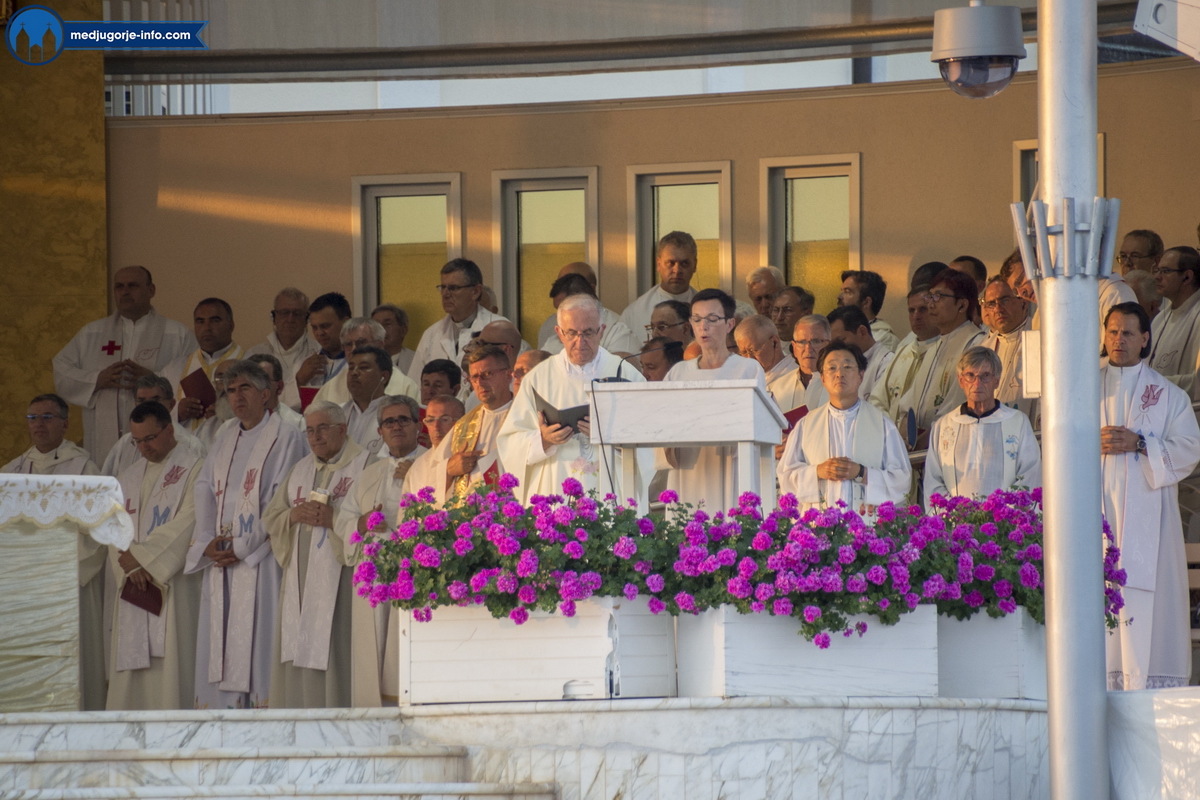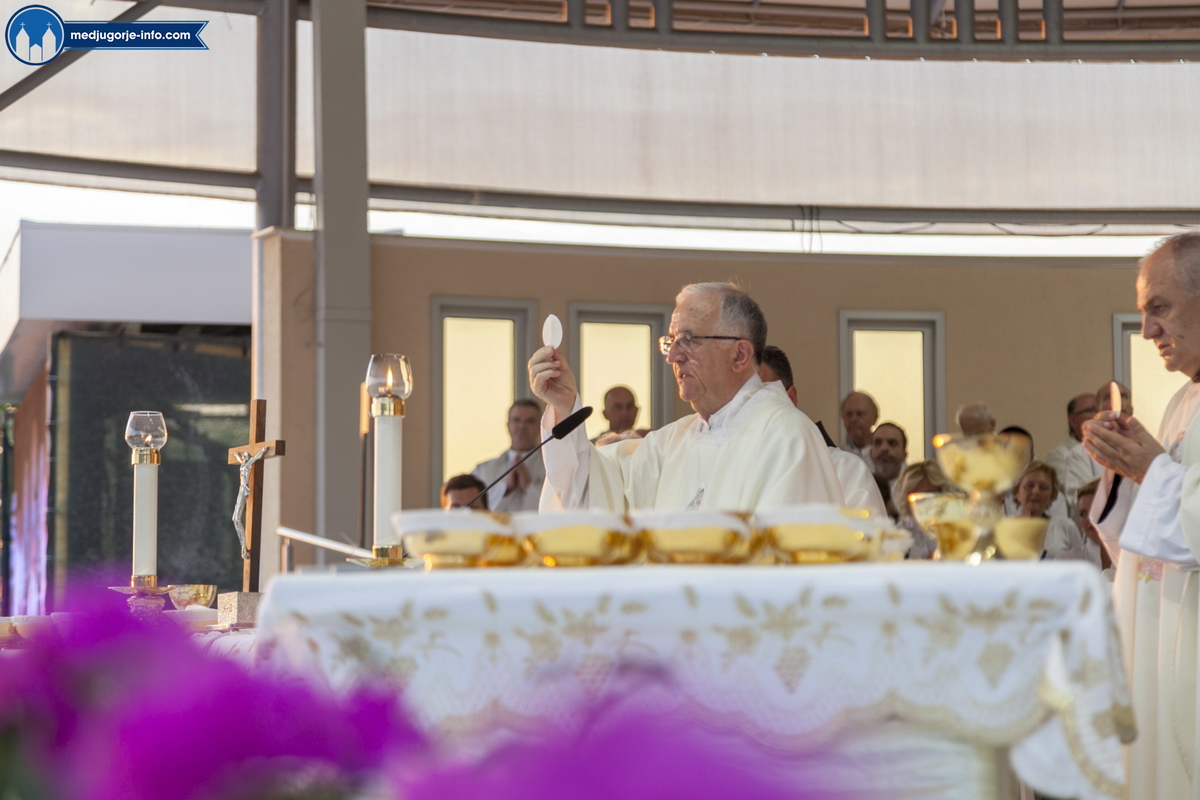 Večernju svetu misu na uočnicu Gospinih ukazanja u Međugorju na vanjskom oltaru crkve sv. Jakova predslavio je, u koncelebraciji 151-og svećenika, fra Mate Dragičević.