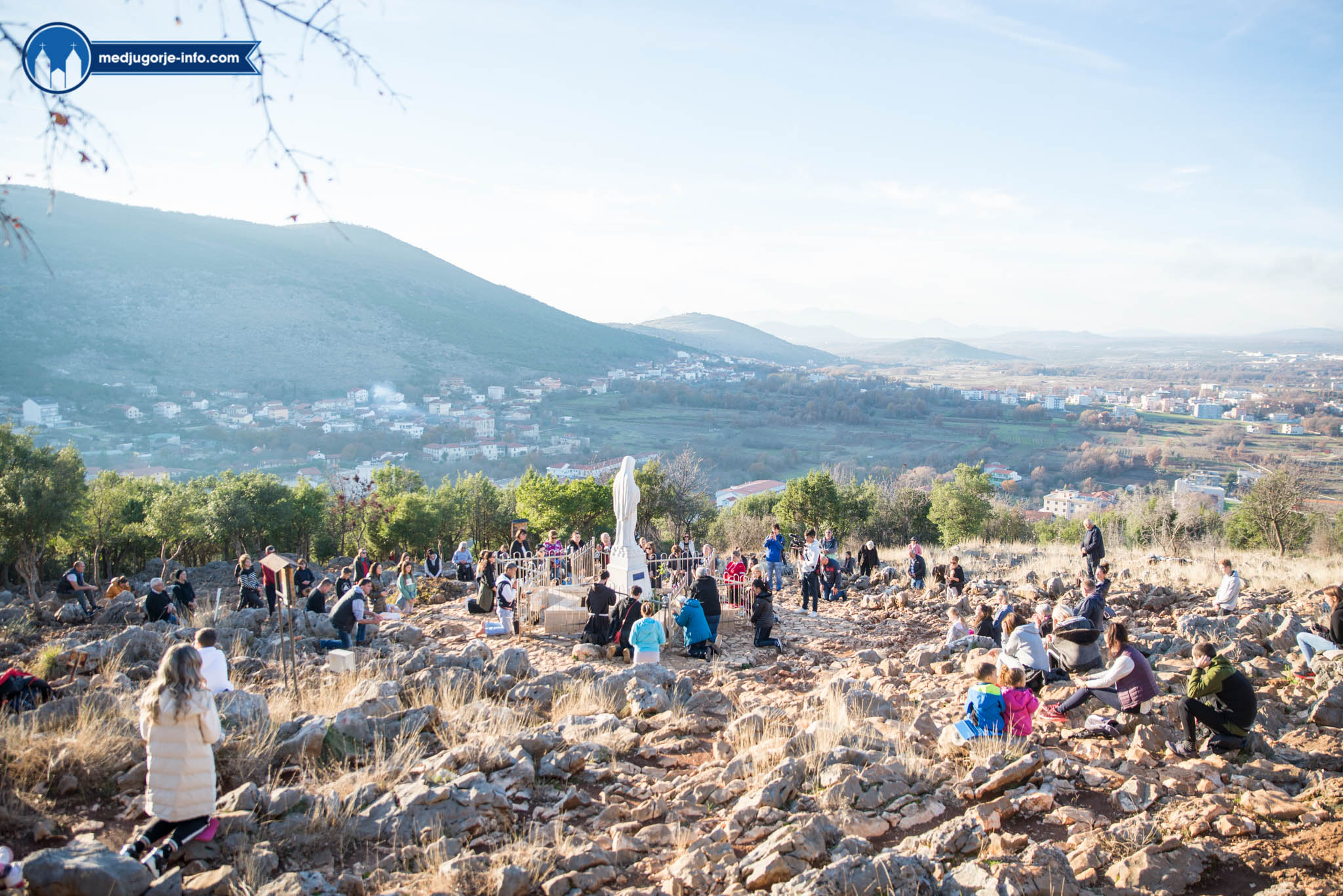 Devetnica Božiću započela je molitvom krunice uz Brdo ukazanja u 14 sati, koju je sa stotinjak župljana predmolio kratkim razmišljanjima fra Antonio Primorac. Veliki broj djece i mladih uz njihove majke i očeve izmjenjivali su se u predmolitvi desetaka radosnih i žalosnih otajstava krunice, a molitva je završila oko 14, 50 sati pred Gospinim kipom sa molitvom 7 Očenaša i Zdravomarija.