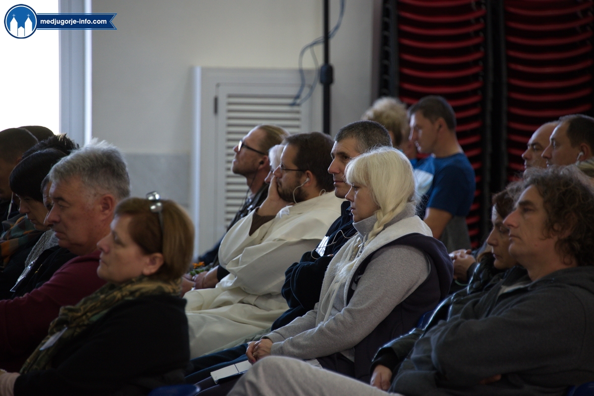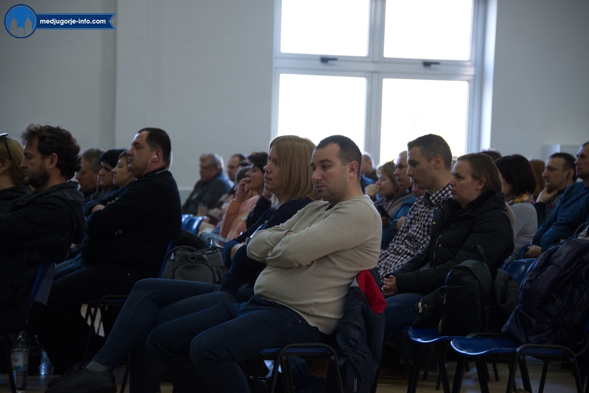 U četvrtak ujutro, oko 200- tinjak sudionika pratilo je predavača dana: međugorskog župnika fra Marinka Šakotu kroz molitvu klanjanja i jutarnja predavanja sve do 12,00 sati. Okosnica predavanja bila je misao sv. Pavla apostola: „Dakle, neka svaki od vas LJUBI svoju ženu kao samog sebe, a žena neka POŠTUJE svog muža!“ (Ef 5, 33) Kroz ove dvije tako različite, a tako nadopunjujuće potrebe, fra Marinko je u jednostavnosti i konkretnim primjerima prisutnim bračnim parovima dočarao različite potrebe i načine gledanja i slušanja koje imaju muškarci i žene. Donio je i konkretne primjere kako će žena iskazati poštovanje mužu, te kako će muž pokazati ljubav svojoj ženi. Bilo je lijepo gledati kako se na određene primjere svakodnevnih muško-ženskih bračnih reakcija prisutni muževi i žene pogledavaju, smješkaju i jedni drugima govore: „Eto tako ti radiš!!! Jesi li čula? i Ovo je naš problem“!!! – što je u konačnici pokazalo da je materijal predavanja svakako pogođen.