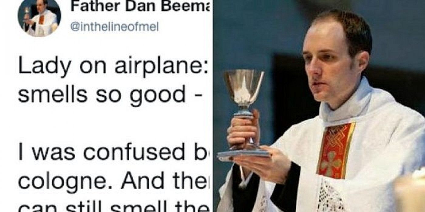 Tweet glasi: "Gospođa mi prilazi u zrakoplovu i kaže: Oče, vaša kolonjska voda tako dobro miriše - ona je baš poput Crkve." A onda sam shvatio: Tamjan. Ona može namirisati tamjan. / Nikad nisam bio tako ponosan."