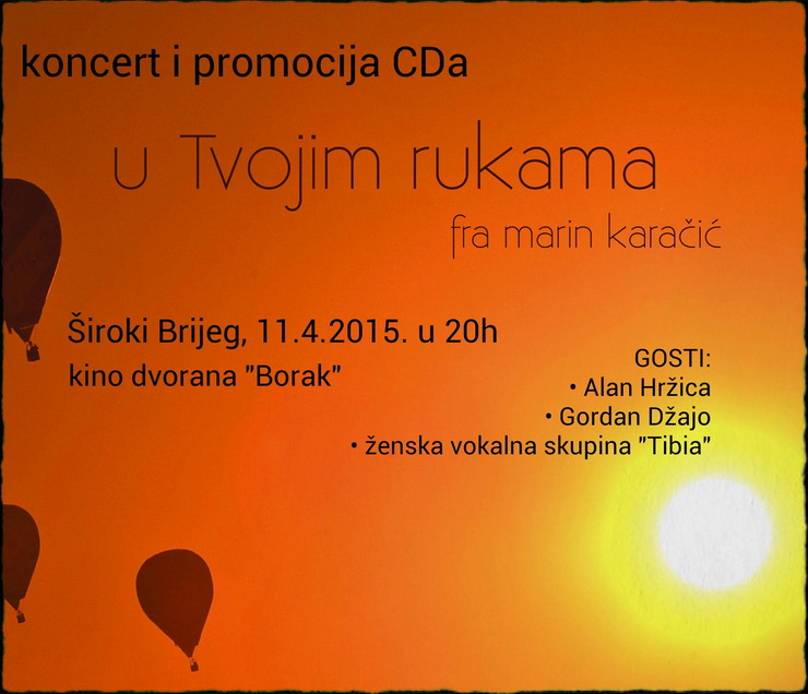 Fra Marin Karačić, đakon i član Hercegovačke franjevačke provincije Uznesenja BDM objavljuje svoj prvi samostalni kantautorski album pod nazivom "U Tvojim rukama", u izdanju Laudata.