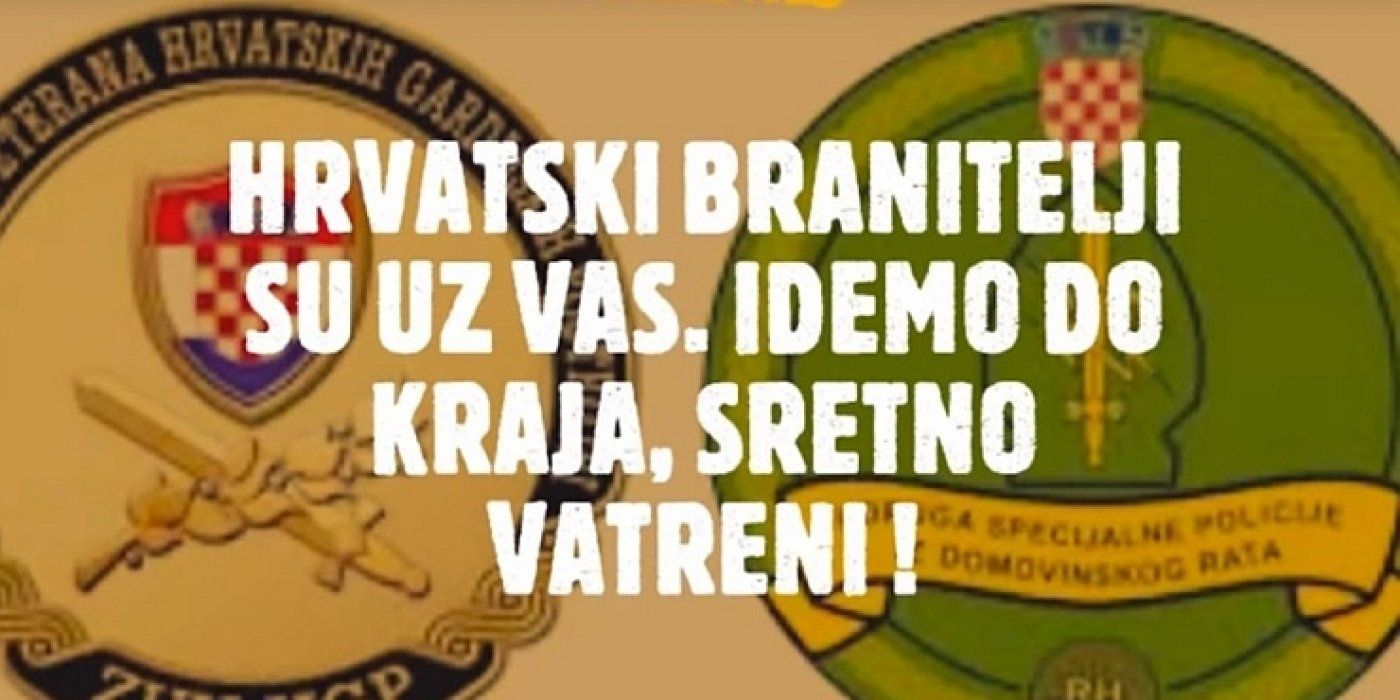 U kratkom videu, u kojem se u podlozi pjesme izmjenjuju oznake braniteljskih udruga, hrvatskim reprezentativcima su poručili: "Sretno Hrvatska! Hrvatski branitelji su uz vas. Idemo do kraja, sretno Vatreni!".