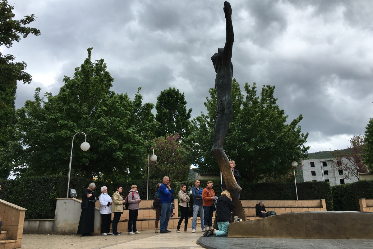 - Hodočasnici kod Kipa Uskrslog Isusa Krista u Međugorju