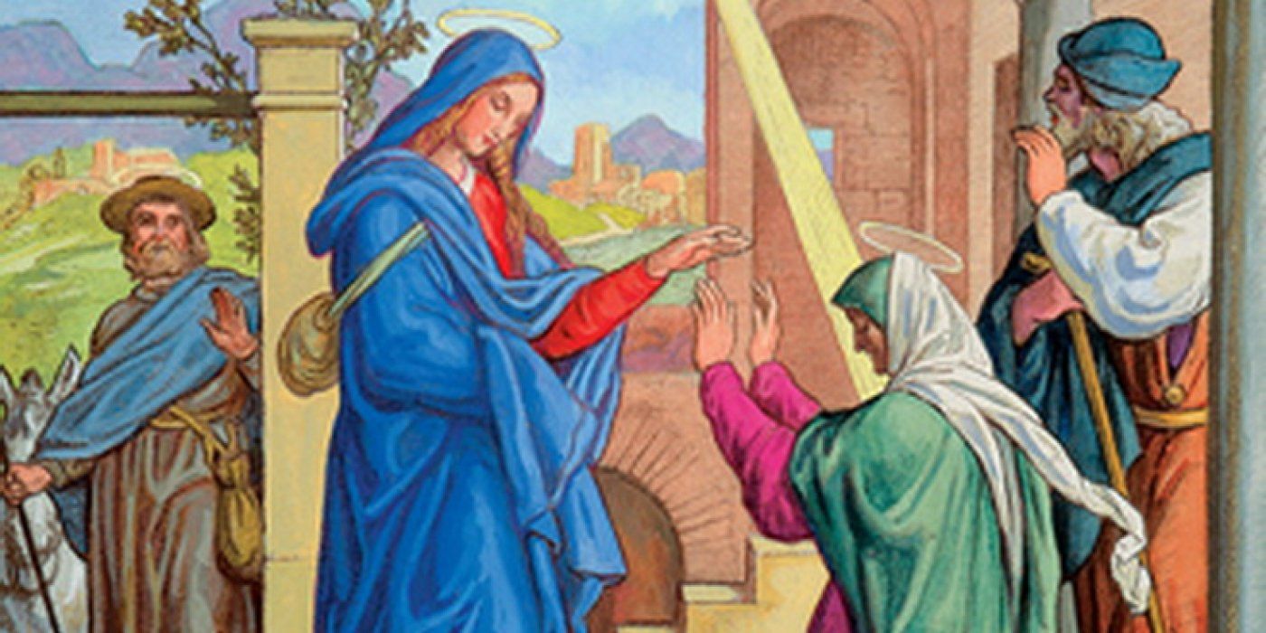 U blagoslovljenome stanju Djevica Marija ide u pohod svojoj rođakinji Elizabeti da joj pomogne u porodu. Dirljiv je to susret dviju dubokih vjernica koje slave Boga što im je iskazao obilje milosti. I čeda pod majčinim srcima su se obradovala ovom susretu. Iz ovog susreta evanđelist je sačuvao Elizabetin "Blagoslovljen" i Marijin "Veliča", hvalospjeve koja Crkva moli svaki dan kako u osobnoj tako u liturgijskoj zajedničkoj molitvi.
