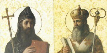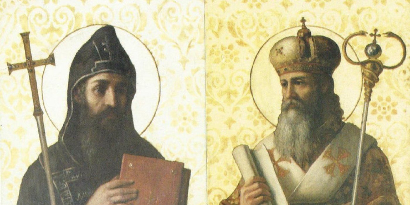 Krsnim imenom Konstantin, monaškim Ćiril (826.-869.) je mlađi brat ali predvodi misije među Slavenima. Metod (812.-885.) je najprije suradnik bratov a potom biskup sirijski.