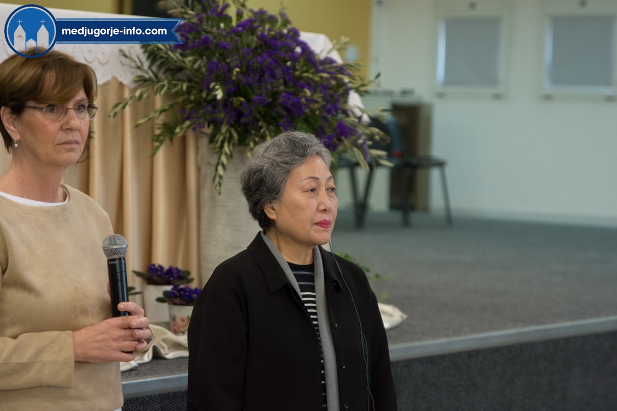 TEREZA IZ KOREJE: osnovateljica je međugorskih molitvenih skupina koje se zovu „UBI CARITAS“ i u Koreji ih ima 58, u 58 gradova. Ovdje ih je sada prisutno 32 voditelja. Svi ovi voditelji molitvenih skupina imali su brojne životne poteškoće i križeve, ali su ovdje u Međugorju pronašli veliku utjehu i snagu za živjeti ih. Stoga sve ono što rade, djeluju iz zahvale Gospi.