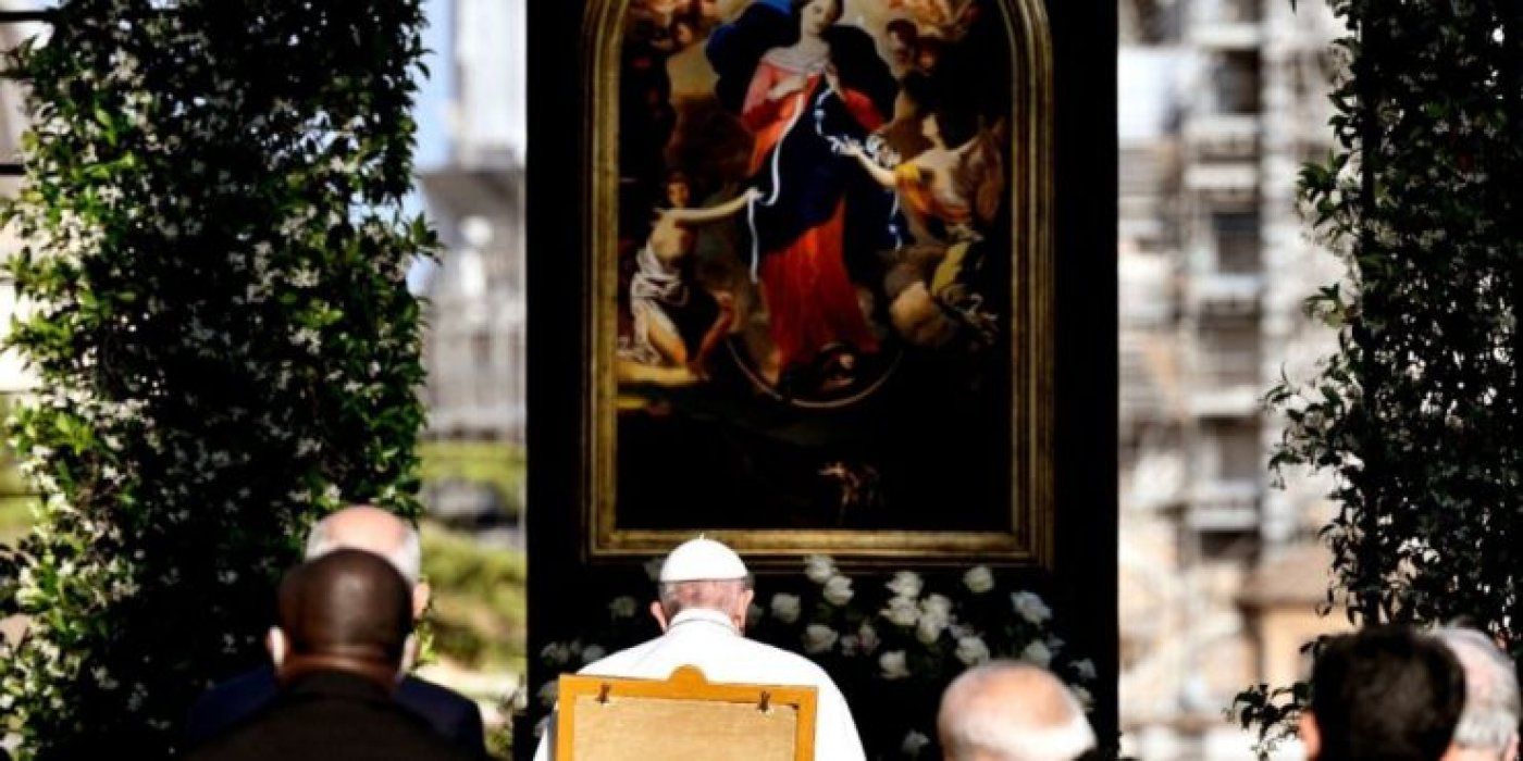 Molitveni maraton, u organizaciji Papinskoga vijeća za promicanje nove evangelizacije, u sklopu kojega je svakoga svibanjskoga dana u 18 sati moljena krunica u 30 svetišta na pet kontinenata, između ostaloga 15. svibnja iz Župe sv. Jakova u Međugorju, Papa je započeo 1. svibnja pred slikom Gospe od pomoći u bazilici Svetog Petra, na što je podsjetio i u današnjem nagovoru u Vatikanskim vrtovima.