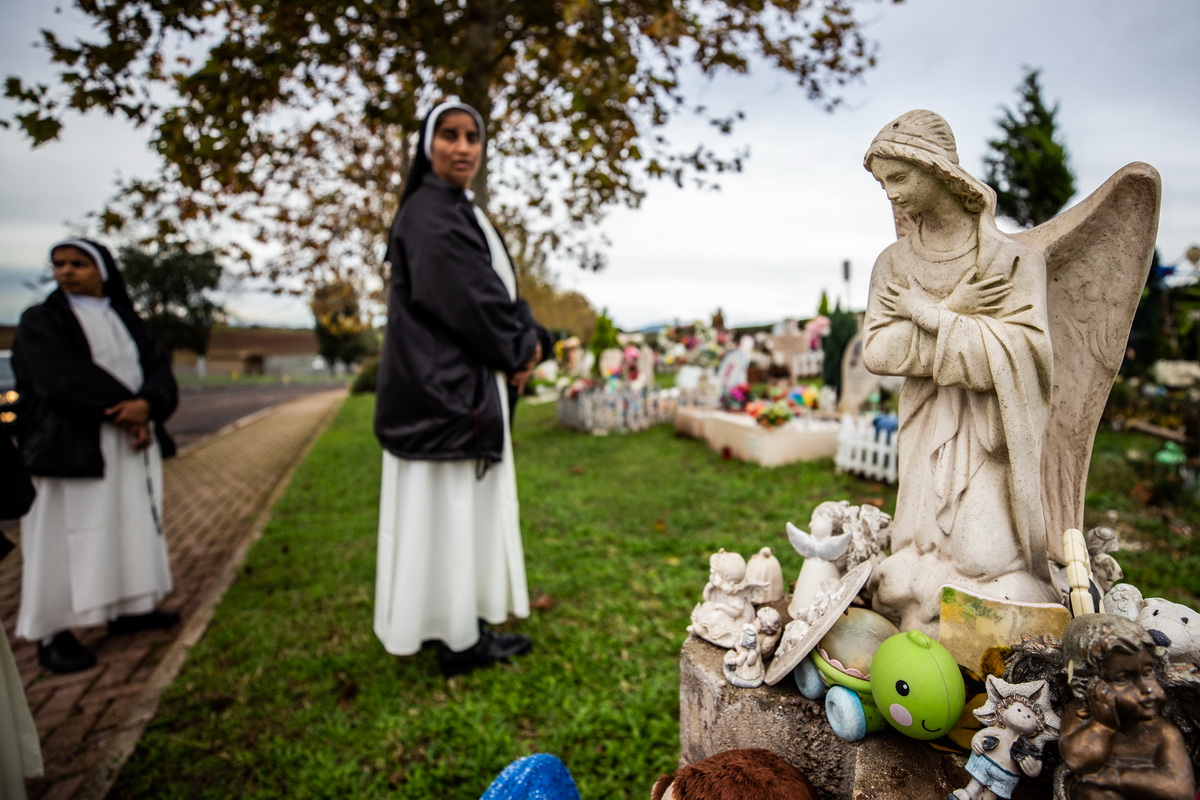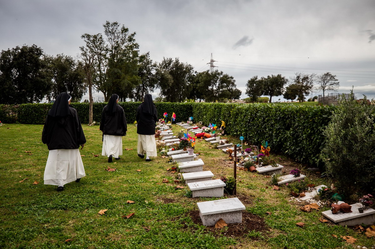 Tu su pokopane i nerođene bebe.Na Dušni dan papa Franjo je predslavio svetu Misu na groblju Laurentino u Rimu.