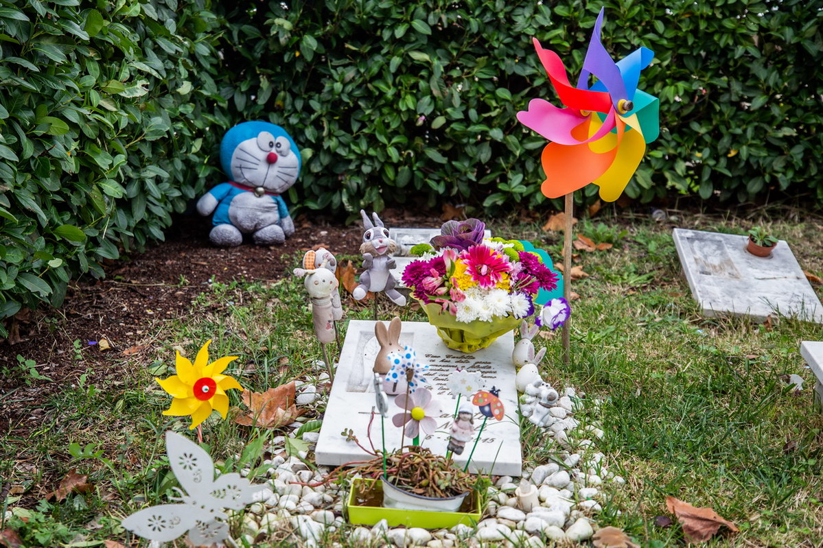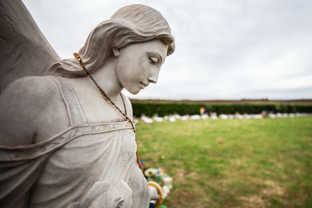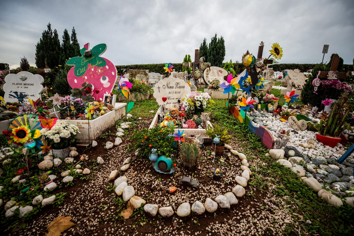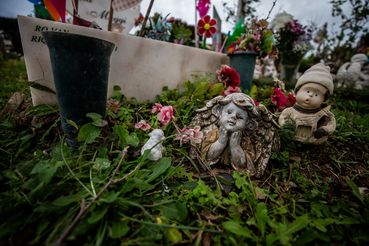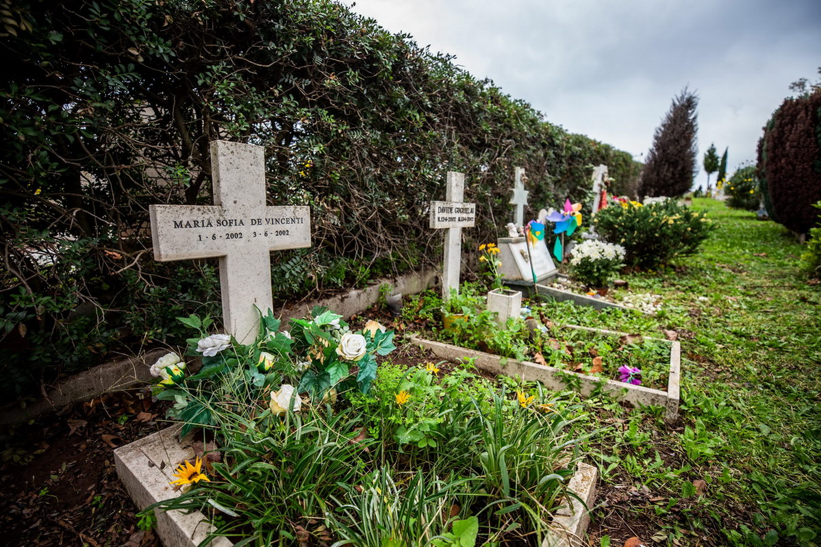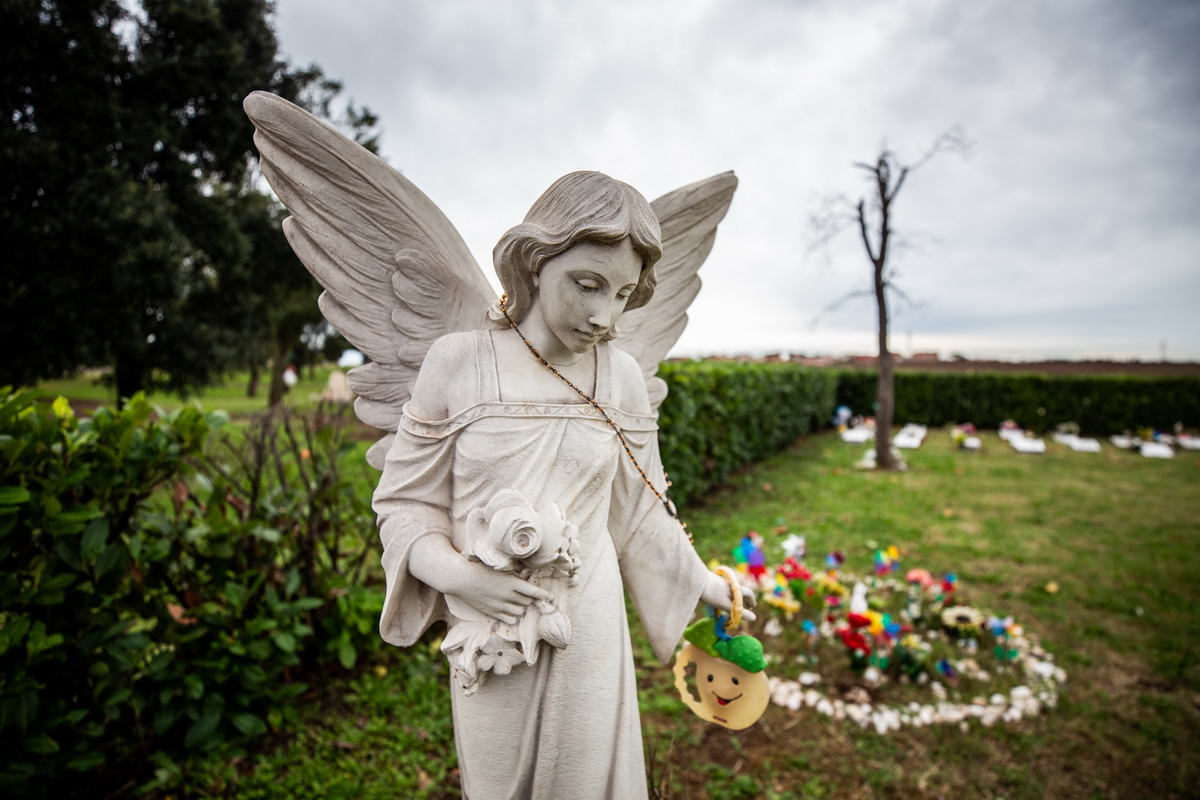 Prije svete Mise Papa se u kratkoj molitvi zaustavio kraj grobova tih malih anđela i molio za njih i njihove obitelji. Ovo groblje se nalazi na južnoj periferiji Rima. Posvećeno je 2002. a 2012. godine unutar ovog groblja izgrađen 'Vrt anđela'. Na ulazu nalaze se dva velika kipa anđela koji simboliziraju dječju nevinost i čistoću.