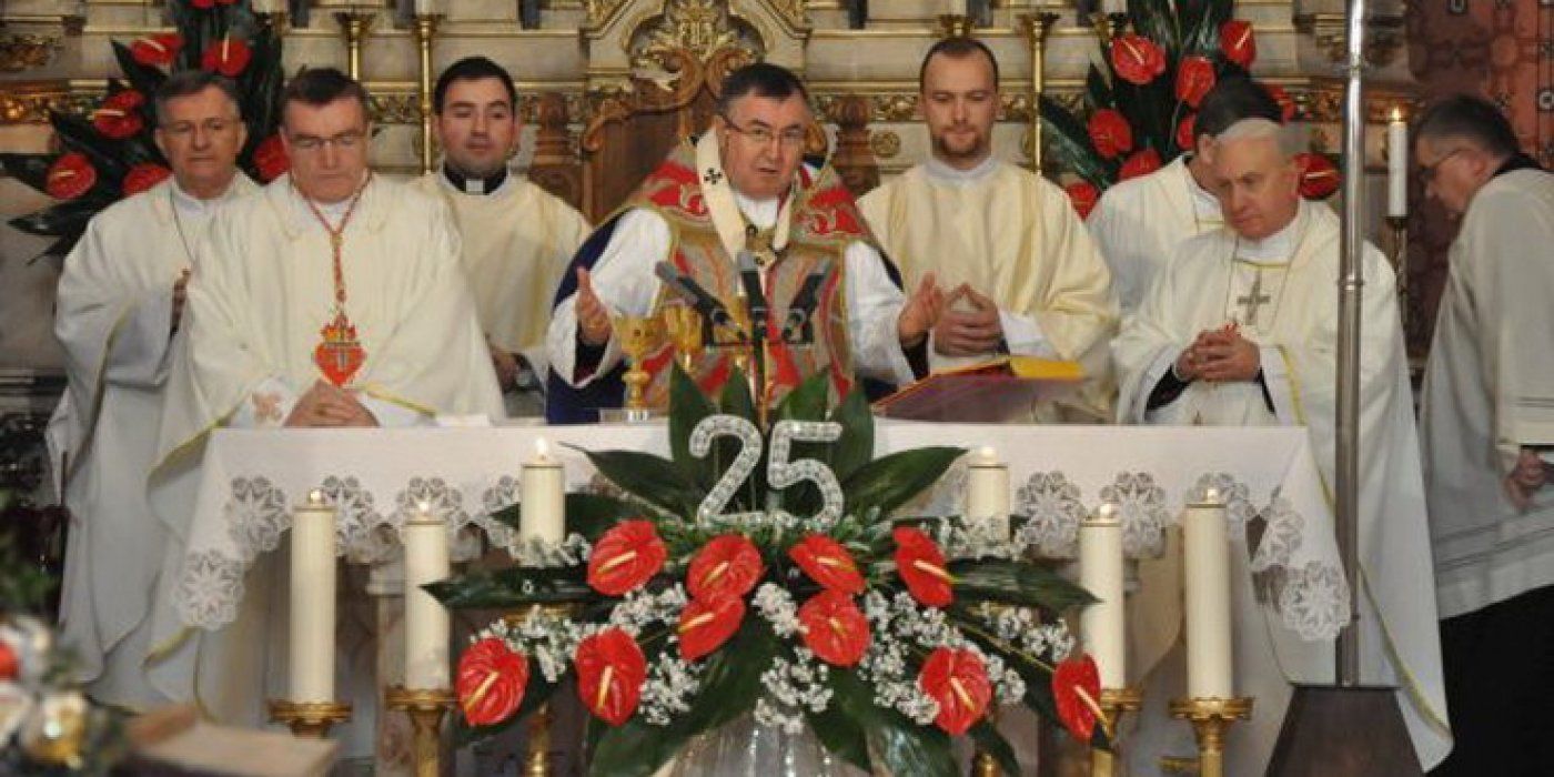 Na kraju Mise riječi zahvale uputio je kardinal Puljić ističući da je „ova Sveta misa bila zahvala Bogu za ovih 25. godina biskupstva“ kojim su ga pratile brojne milosti i preko njega se ostvarivale u mjesnoj Crkvi vrhbosanskoj. „Uz zahvalu Bogu, kao i zagovoru nebeske Majke i naših zaštitnika, želim se i ljudima zahvaliti“, rekao je kardinal Puljić posebno zahvalivši kardinalu Bozaniću na cjelokupnoj suradnji i bratskom zajedništvu, nunciju Pezzutu na svekolikoj potpori Katoličkoj Crkvi u BiH te svim nadbiskupima i biskupima koji ste svojom prisutnošću iskazali solidarnost i bratsko zajedništvo te blizinu s Crkvom na ovim prostorima. Zahvalio je i ocima provincijalima i provincijskim glavaricama i svim redovnicima i redovnicama na izraženom zajedništvu i potpori. Osobitu zahvalnost uputio je braći svećenicima ističući da su mu bili posebna potpora u vođenju mjesne Crkve te spomenuo sva duhovna zvanja koja su budućnost Crkve.