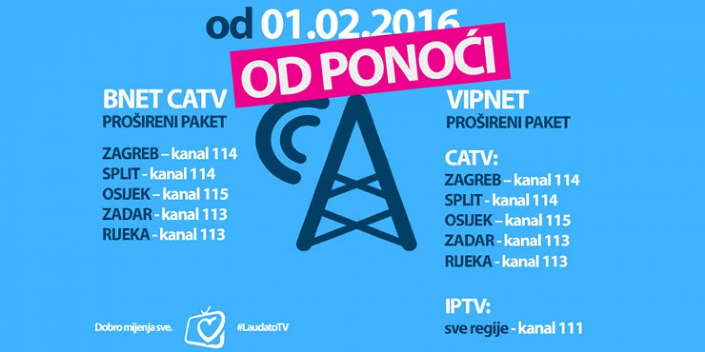 Laudato TV na kabelskoj platformi (CATV) Bnet-a i VIPneta-a bit će dostupan na sljedećim kanalima: