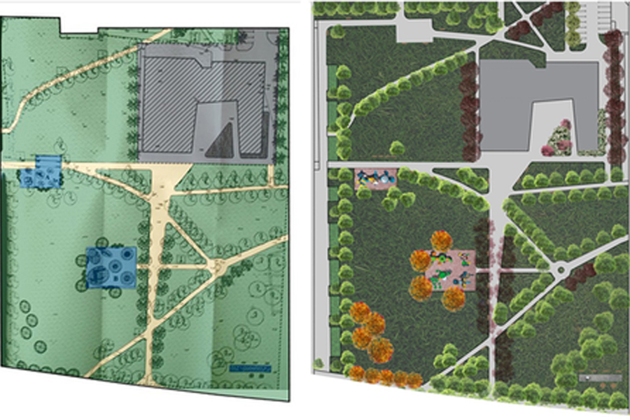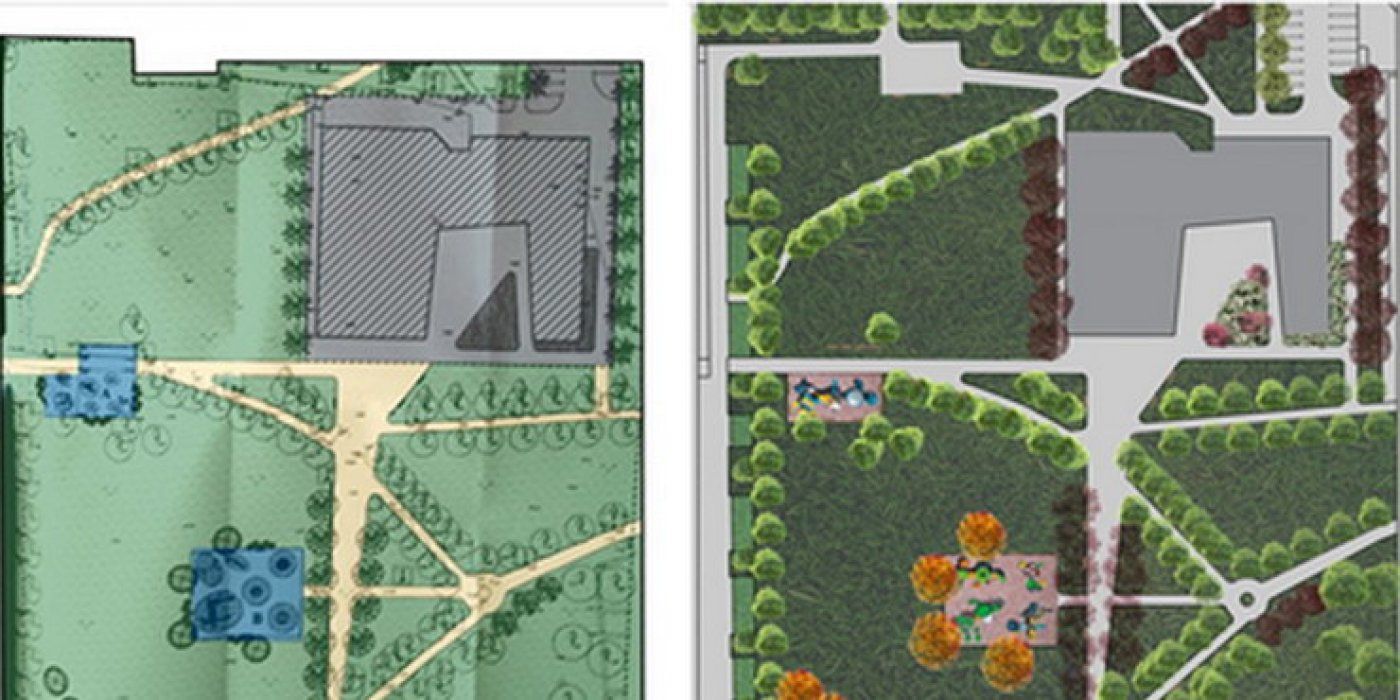 Lijeva situacija jest obojen prikaz planirane situacije po projektu, koju je javnosti predstavila inicijativa “Čuvamo naš park”. Desni prikaz je također obojen prikaz iste te planirane situacije kojega su izradili župljani Župe prema Idejnom projektu. Jasno je kako su iz inicijative “Čuvamo naš park” namjerno, u svrhu dezinformiranja građana, čitav prostor oko crkve prikazali kao površinu crkve – obojeno sivo, tj. kompletnu česticu crkve unutar parka prikazali su kao betoniranu, potpuno zanemarivši što je zapravo izgrađeno. Na ispravnom prikazu, na desnoj slici, jasno se vidi da crkva i pastoralni centar svojim volumenom tvore mali pristupni trg s ružičnjakom koji je otvoren svim stanovnicima u svakom trenutku, gdje ne postoji odijeljenost prostora ogradom, te je baš taj prostor mjesto susreta i doticanja crkve i parka, s ciljem stapanja zelenila parka i crkvenog okoliša u jednu neprekinutu zelenu formu. Također, s istočne i sjeverne strane crkve je zaštitno zelenilo koje je na situaciji s lijeve strane prikazano kao beton. Umjesto manipulacije brojkama, držimo se one: “Slika govori 1000 riječi.” Istinita slika, dakako.