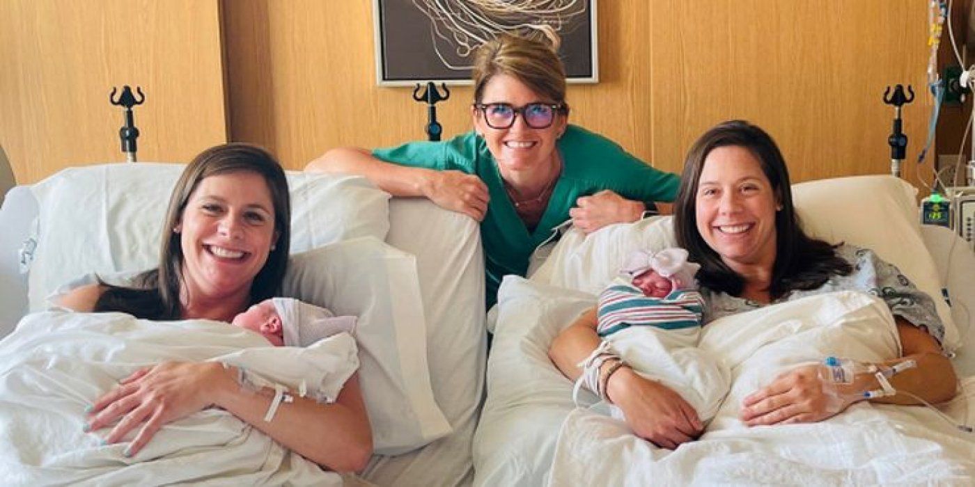 Par nije mogao očekivati da će njihova ginekologica, dr. Mary Beck iz Pijemonta, biti zauzeta trčeći iz jedne u drugu sobu dok su žene istodobno rađale. Srećom za doktora, blizanci su bili u susjednim sobama i održavali su kontakt i podržavali se putem FaceTimea.