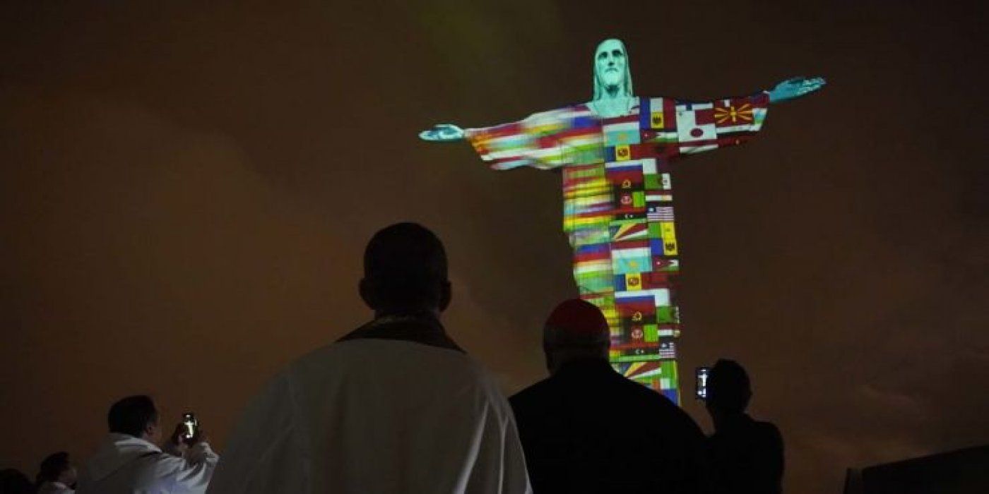 Raširene ruke kipa Krista Otkupitelja u Brazilu koji je odavno simbol Božje ljubavi prema svijetu u srijedu navečer bio je osvjetljen zastavama svih zemalja pogođenih pandemijom virusa COVID-19, zajedno s porukom #praytogether(Molimo zajedno) koja je prevedena na brojne svjetske jezike.